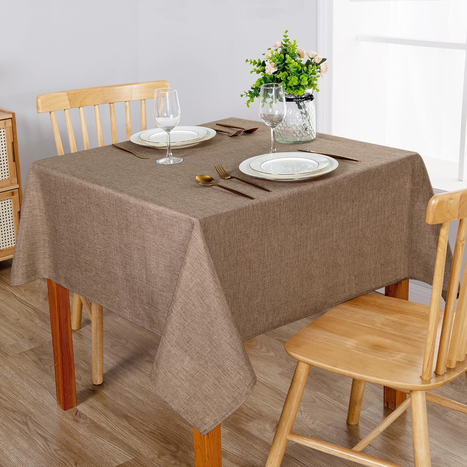 Hiasan 2 Pack Faux Linen Square Tablecloth - Wrinkle and Stain Resistant Washable Table Cloth for Kitchen Dining Room Holiday Table Cover for Party Dinner, Khaki, 54 x 54 Inch