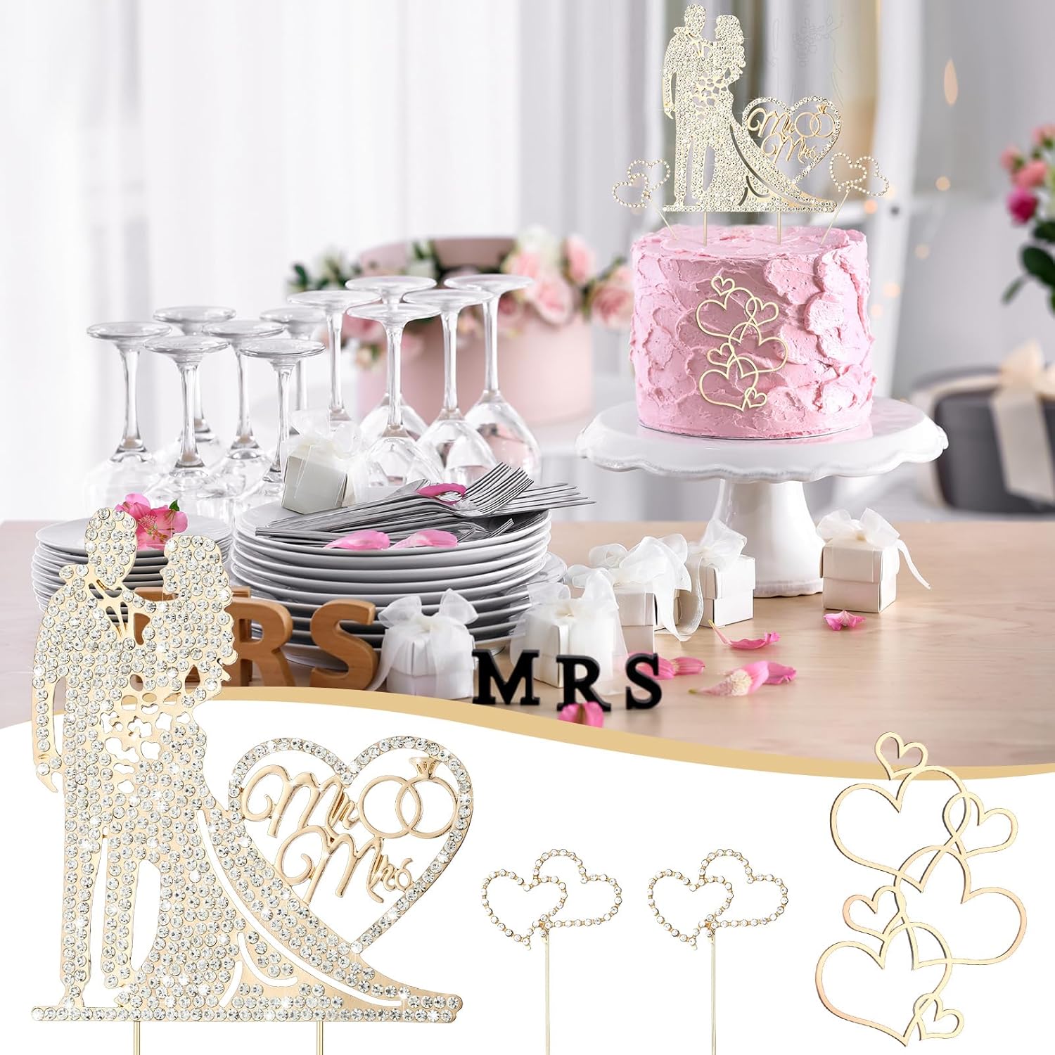 - Size Information: the Mr and Mrs cake topper measures about 5.3 x 3.9 inch, and the rhinestone heart cake toppers are about 1.97 x 1.38 inch, appropriate size for decorating a variety kinds of items