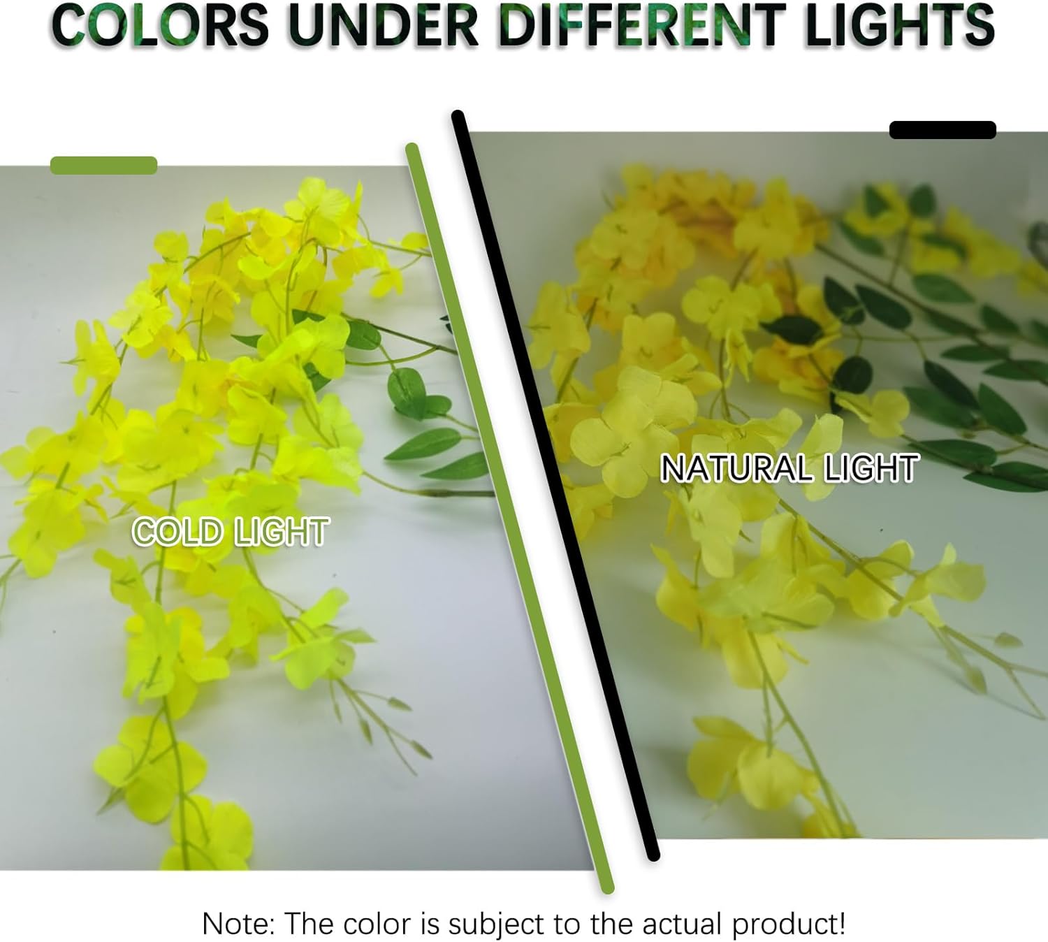 - 【Suitable for A Variety of Scenes】Yellow Wisteria hanging flowers have a purely natural pattern design, realistic and natural, suitable for decorating living rooms, bedrooms, study rooms, and windowsill places, so that your living space into the natural atmosphere, become more comfortable. At the same time, they are also suitable for decorating dinner parties, birthday parties, weddings, and other places, to create a warm atmosphere, so that your guests leave a good and unforgettable memory.