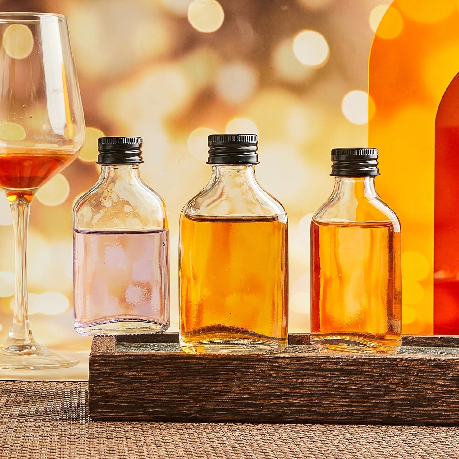 - Solid Material: these small liquor bottles are formed by quality glass with aluminum alloy caps, which are not easy to break, light in weight and portable to carry or store, have no bad smell, the bottle and cap can nicely fit, providing a long time service for you