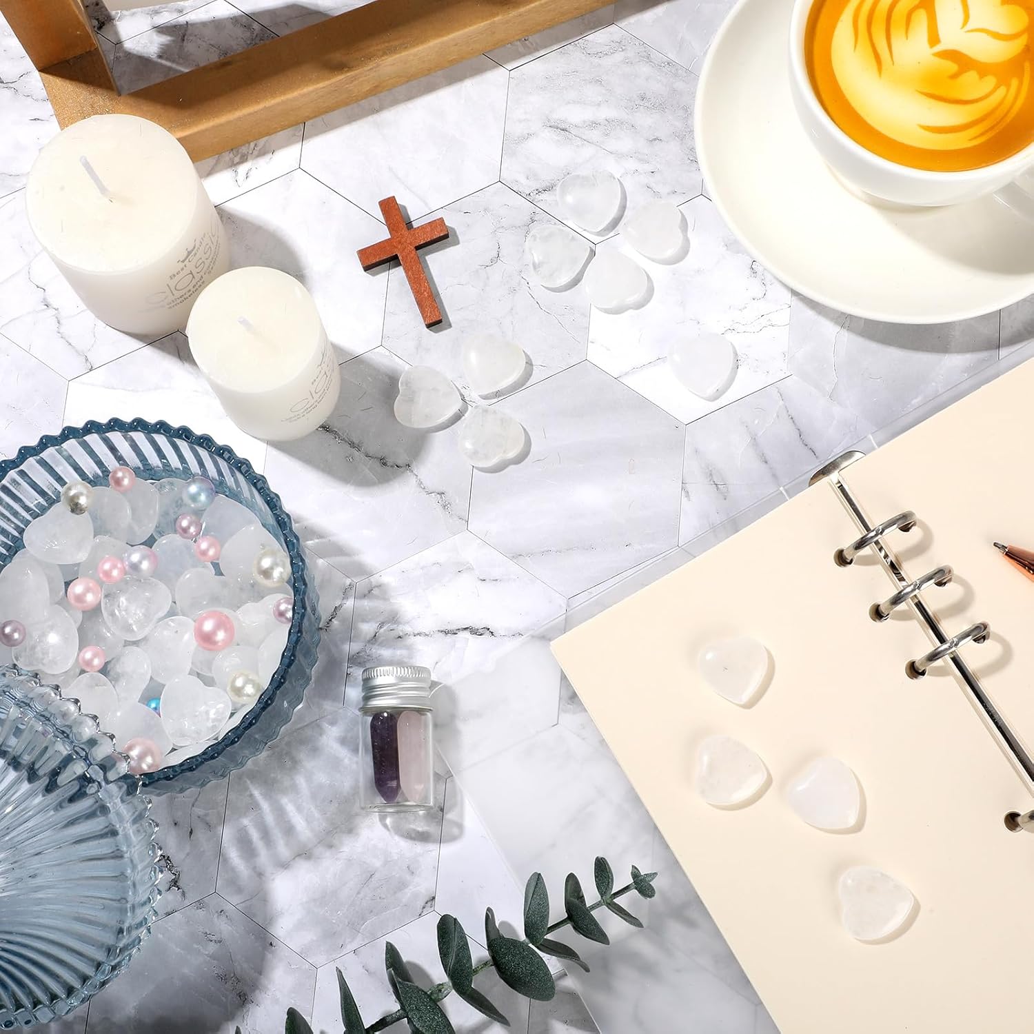Gerrii 50 Pcs Heart Healing Stone Bulk Quartz Heart Inspirational Stones Gift for Women Love Pocket Polished Natural Energy Balancing Meditation 0.8 Inch(Clear)