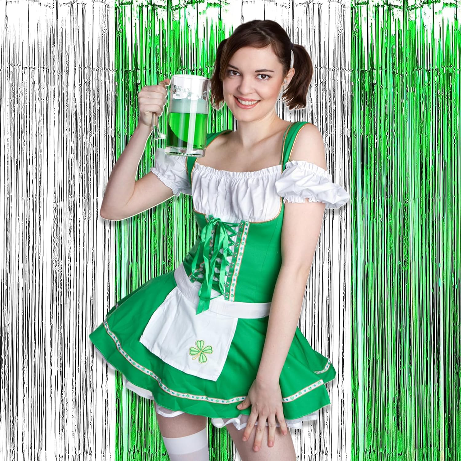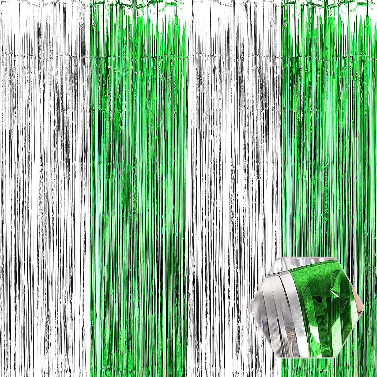 3 Pack Silver Green Foil Fringe Curtain Backdrop, 3.28Ft x 8.2Ft Metallic Tinsel Foil Fringe Streamer Curtains for Photo Booth, Christmas Day, Thanksgiving, Wedding, New Year Party Decorations