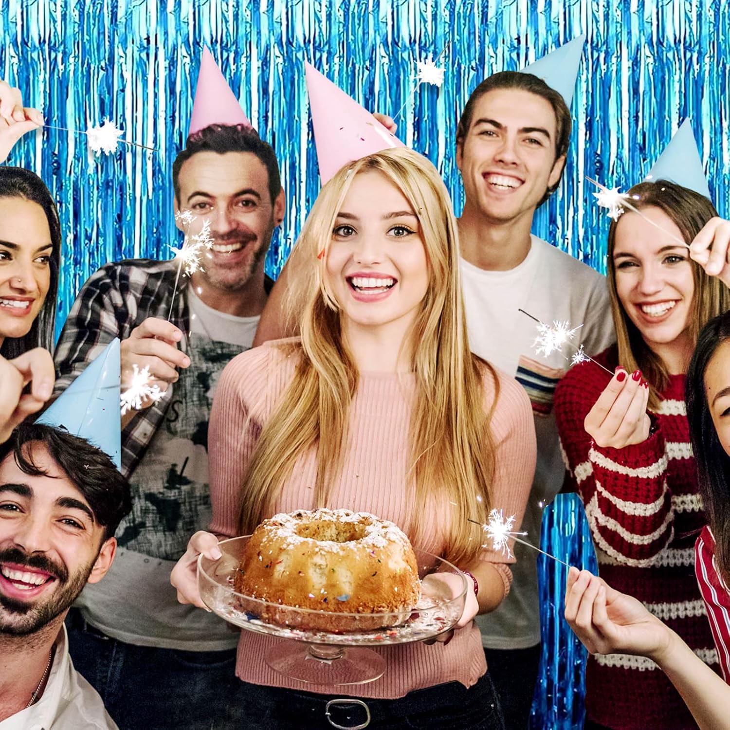 - 3.28Ft x 8.2Ft Feet | Vibrant Shiny Streamers : This sparkling tinsel blue fringe curtain is large size of 3.28ft x 8.2ft feet, pack of 3. Made of aluminium foil. This decorations for party backdrop will radiates laser like shine. and this will be a perfect party backdrop for the photo booth you had prepared for your friends and kids.