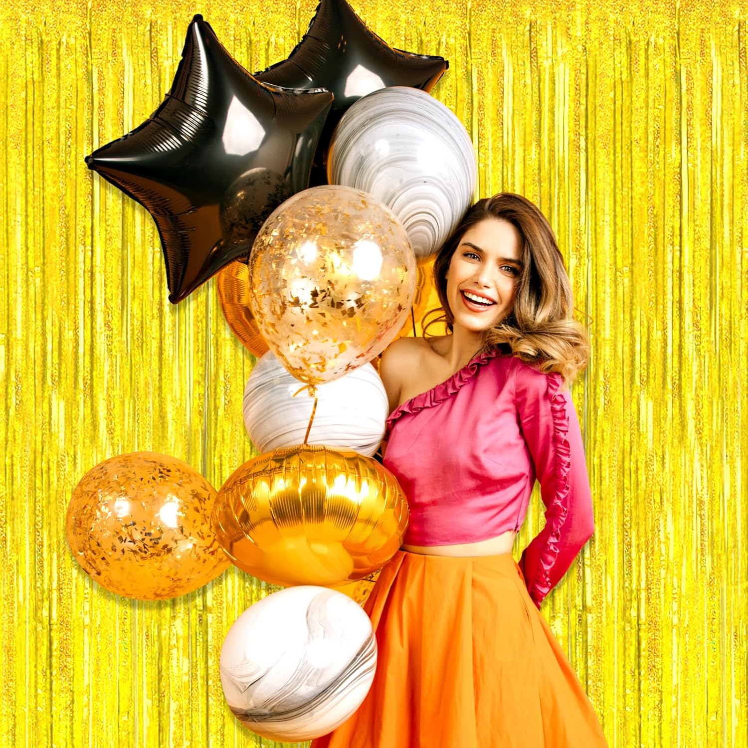 3 Pack Gold Foil Fringe Curtain Backdrop, 3.28Ft x 8.2Ft Metallic Tinsel Foil Fringe Streamer Curtains for Photo Booth, Mother's Day, Easter, Birthday, Wedding Party Decorations
