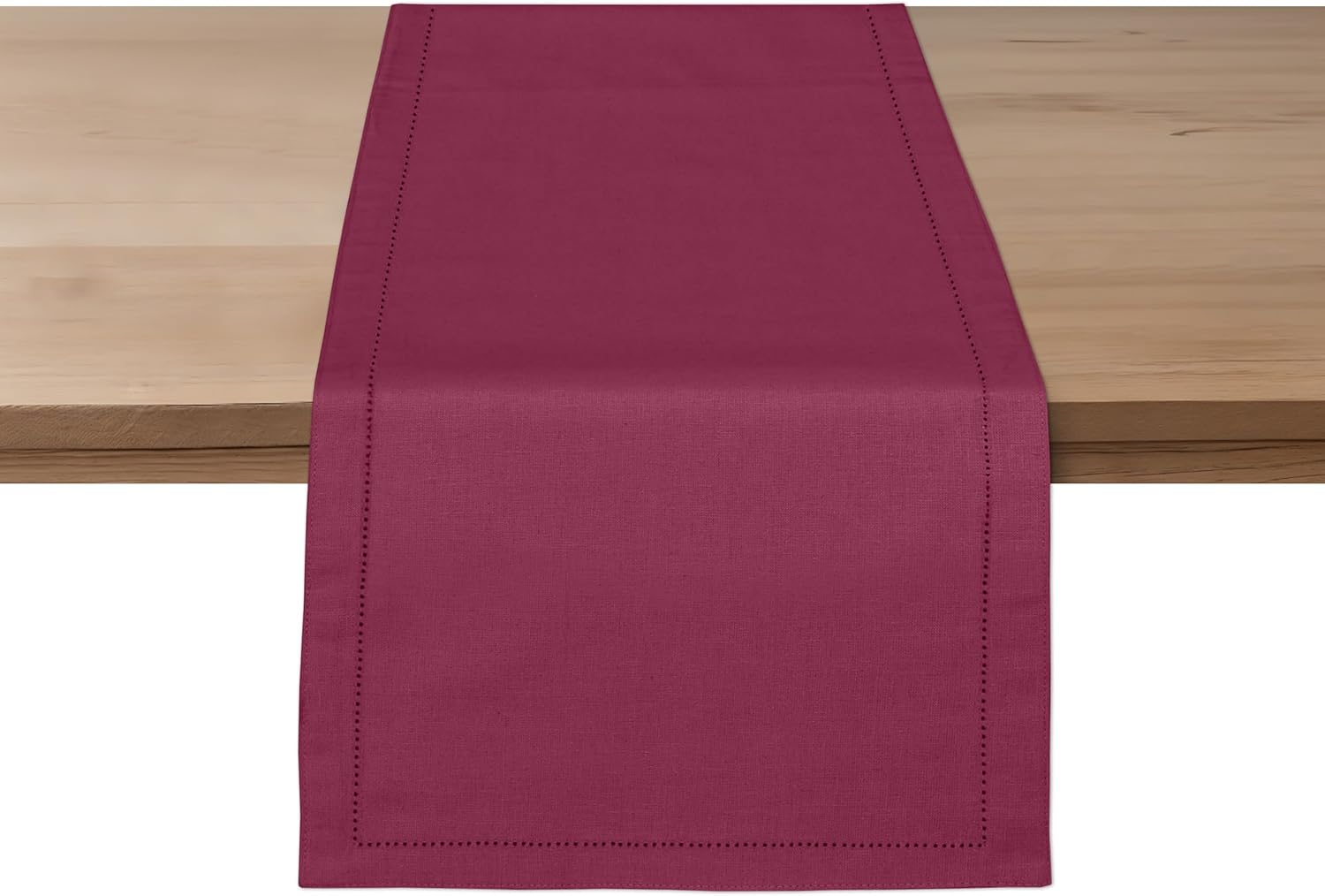 Ruvanti Linen Table Runner 90 Inches, Classic Hemstitch, Washable, Reusable, Non-Slipping, Stain Resistant- Perfect for Parties, Weddings, Dinners, Thanksgiving, Christmas, Indoor use – Burgundy