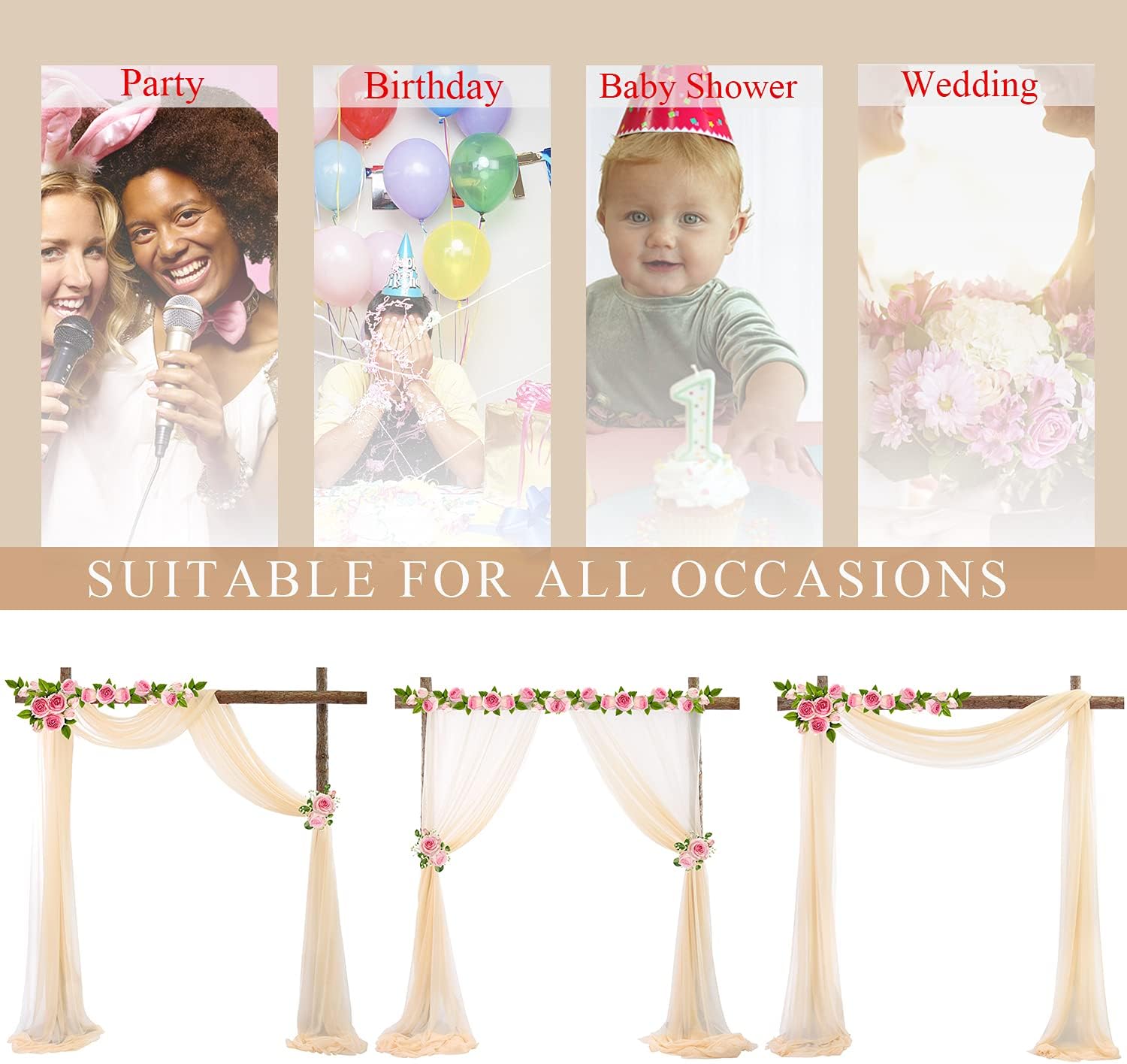 - ELEGANT DECOR: This sheer chiffon fabric drapes beautifully to transform any arch into a romantic backdrop for wedding photos and ceremonies.