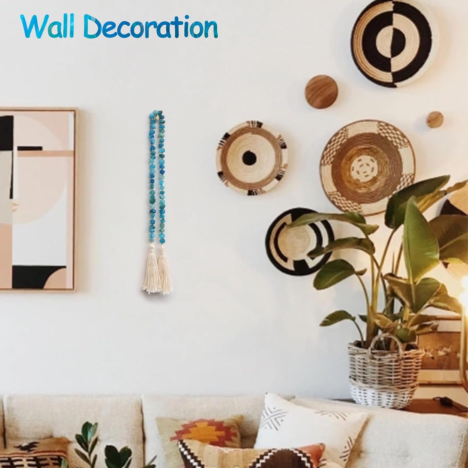 Agate Stone Hand Knotted Garland Modern Farmhouse Rustic Table Home Decor, 30inch Meditation Accessories with Tassel, Prayer Healing Beads Boho Wall Shelf Hanging Decoration (Sky Blue)