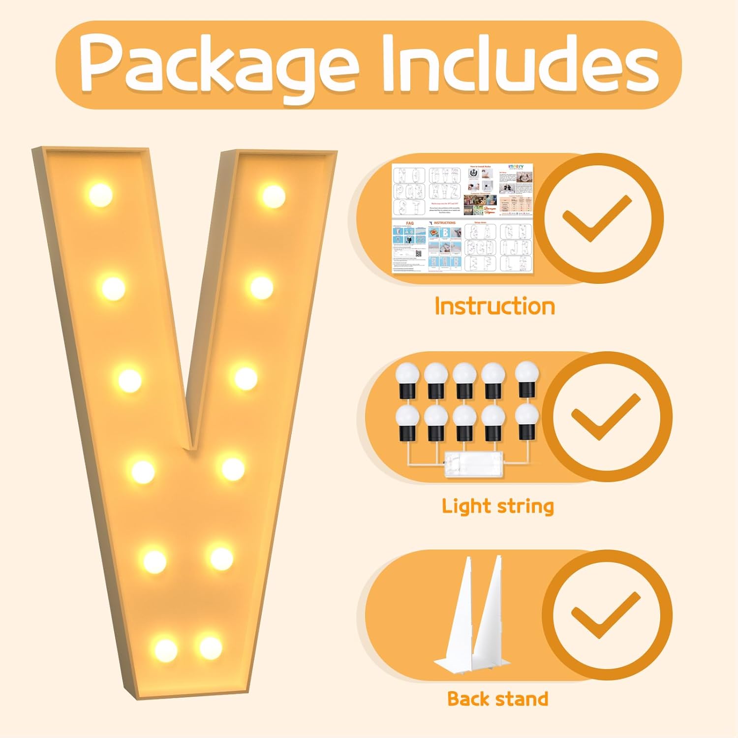 Marquee Letters 4 Feet Tall Large Light Up Letters V Happy Birthday Decorations Marry Me Engagement Party Decor Yellow Light Birthday Decorations Balloon Arch Kit Foam Sign V