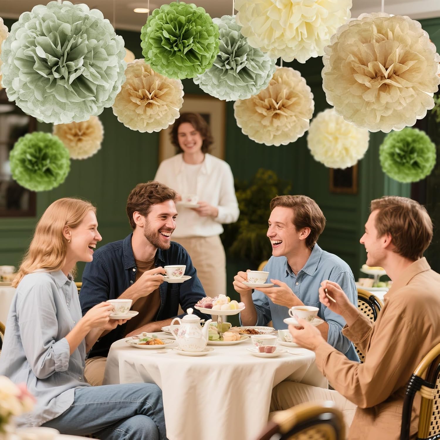 - Versatile & Size Set: Olive Sage Green Tissue Paper Poms offers a range of colors and sizes to suit your decor needs. Includes 15 pom poms: beige (2 x 7.8 inches), brown (2 x 9.8 inches, 2 x 7.8 inches), sage green (3 x 9.8 inches, 2 x 7.8 inches), olive green (2 x 9.8 inches, 2 x 7.8 inches). Ideal for layered pastel party decorations or creating a serene neutral palette.