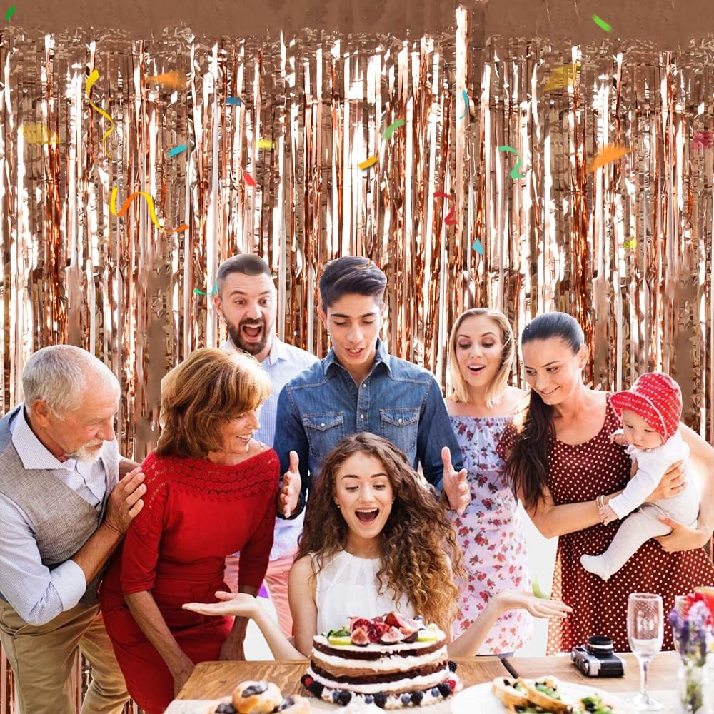 - 2 Pack Rose Gold Party Streamers - The foil curtain streamers is suitable to decorate all the party theme: birthday party, baby shower, wedding party,kids’ birthday party, outdoor party. You can decorate the walls, window, doors with this rainbow crepe paper to make your party interesting.