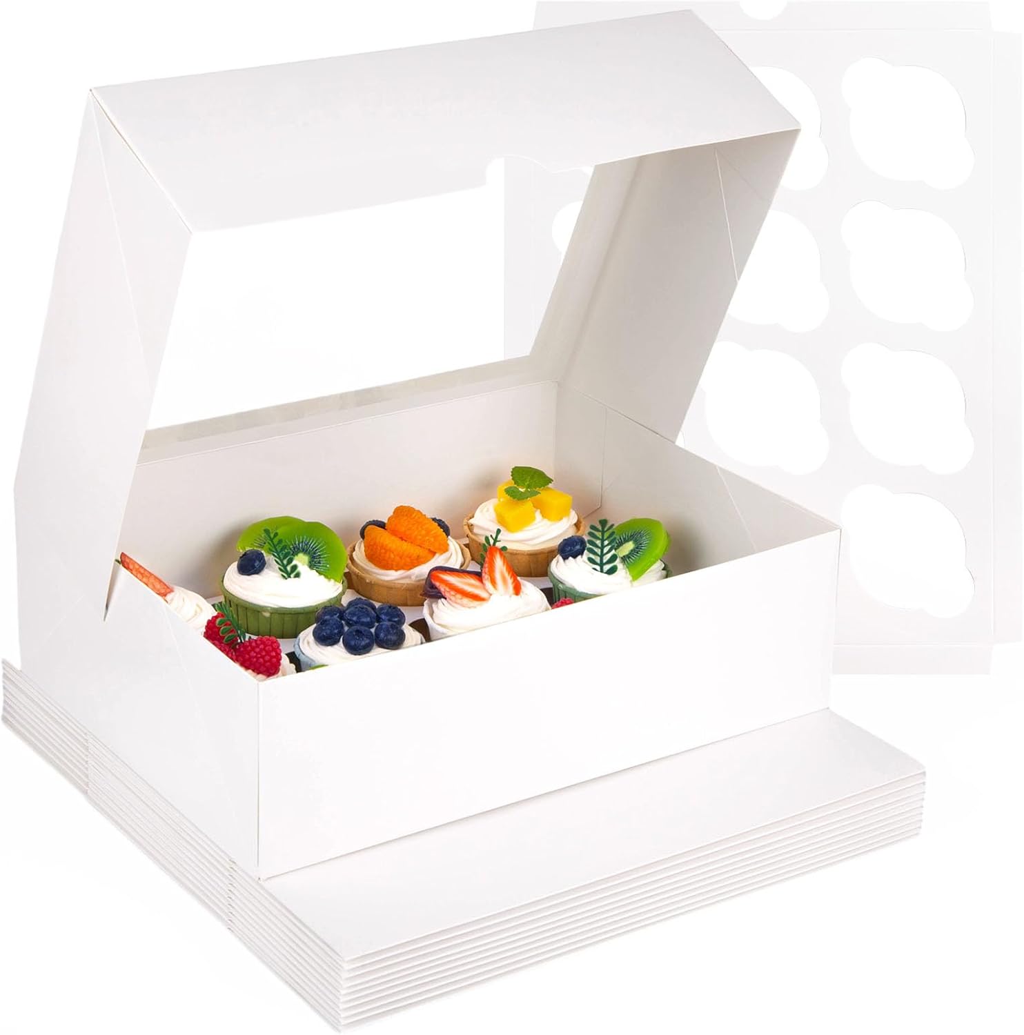 - Safe Cupcake Packaging: Made from high-quality food-safe white cardstock, these cupcake boxes are ideal for gifting or retail. The cupcakes holders help maintain the freshness of your baked goods and protect the frosting during transit, all while ensuring a professional presentation