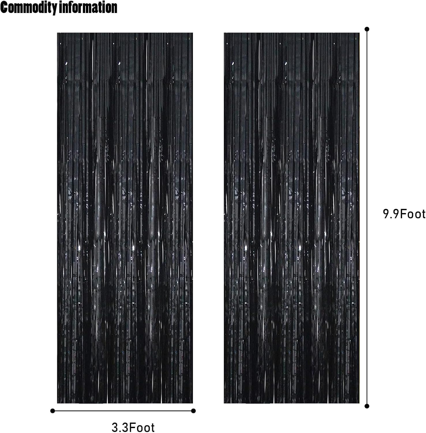 - 🎉PACKAGE INCLUDED : 2 pack of black foil fringe curtains, the size of each tinsel curtain is 3.3 ft x 8.2 ft, enough length for hanging on a door or covering a wall fully, suitable for any parties.