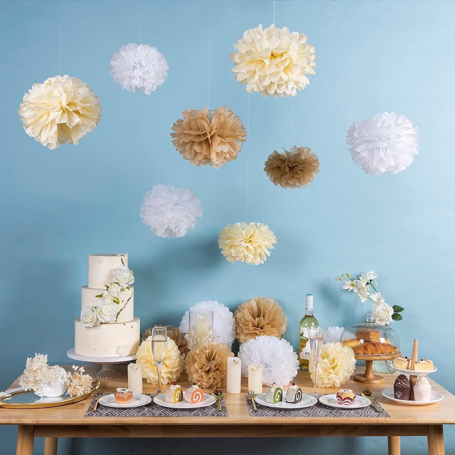 - Perfect for Any Occasion:Whether it's a wedding, birthday, engagement reception, or bridal shower, these pom-poms elevate your decor with understated elegance. Their boho flair suits rustic, vintage, or modern themes, while the gender-neutral tones work for baby showers and boots-or-bows gender reveals. Use them as backdrops, centerpieces, or ceiling accents—they transform spaces instantly.