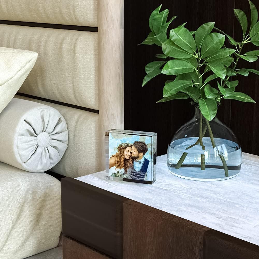 HELPLEX Acrylic Frame, 5 Pack 4x4 Inch Picture Frames, 20mm Thicker Frameless Clear Double Sided Magnetic Free Standing Desktop Display Stand