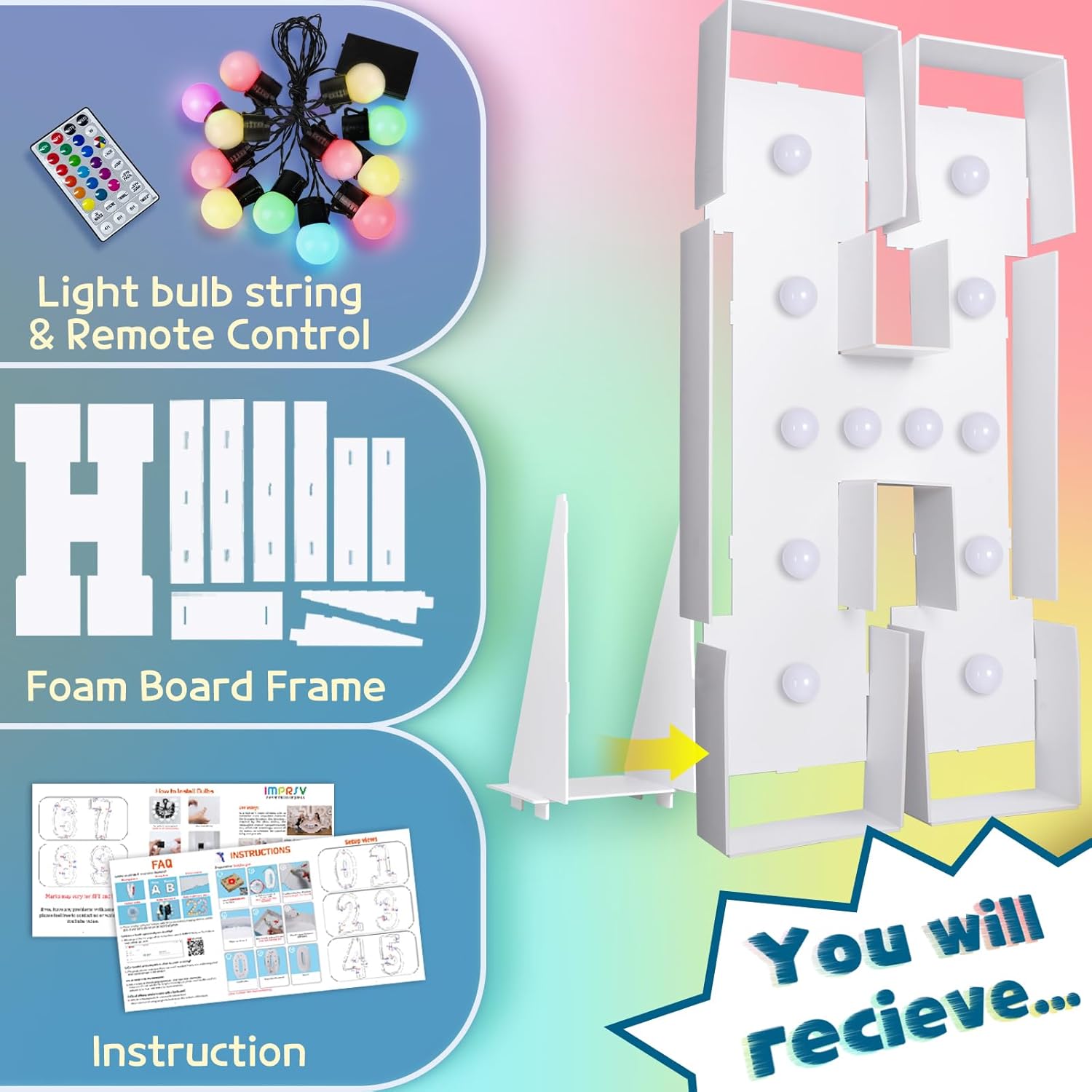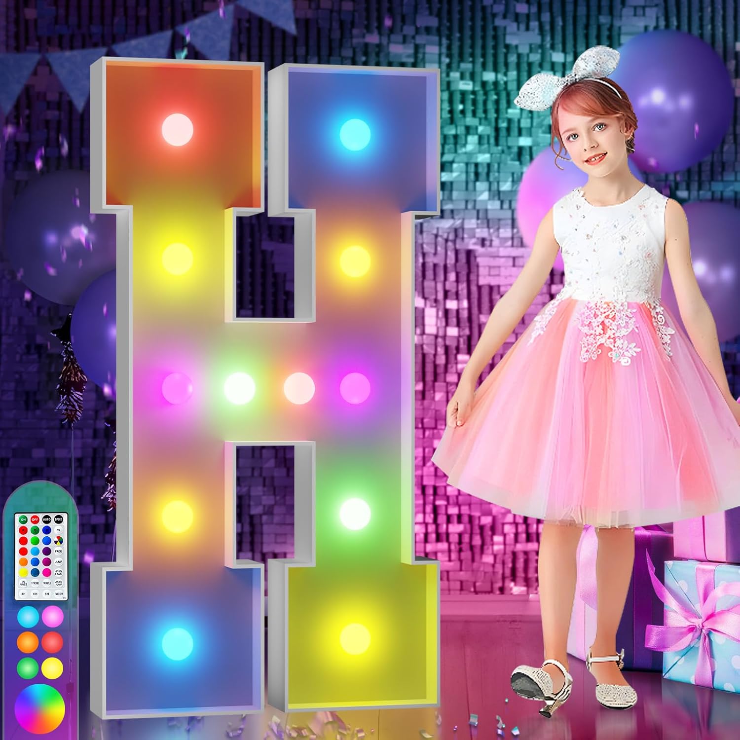 imprsv 4FT Colorful Marquee Light Up Letters H, 18 Colors Large Light up Letters Alphabet Sign with Remote, Large Marry Me Sign, Birthday Party Decorations Baby Shower Anniversary Wedding Decoration
