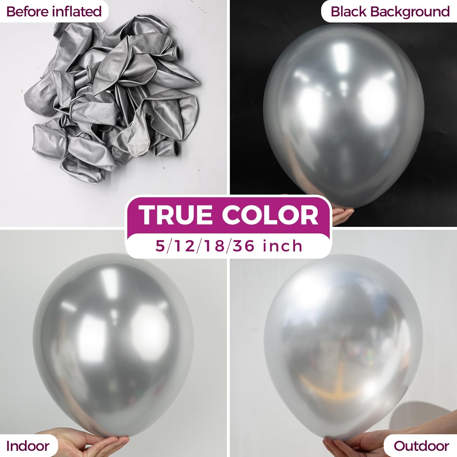 - ăMetallic Silver Themed Partyă- Chrome silver jumbo balloons can be used in silver themed party or mix with any color to create a perfect silver themed wedding, bridal shower, birthday, anniversary, Christmas and any themed party inside or outside, which makes your party more special.