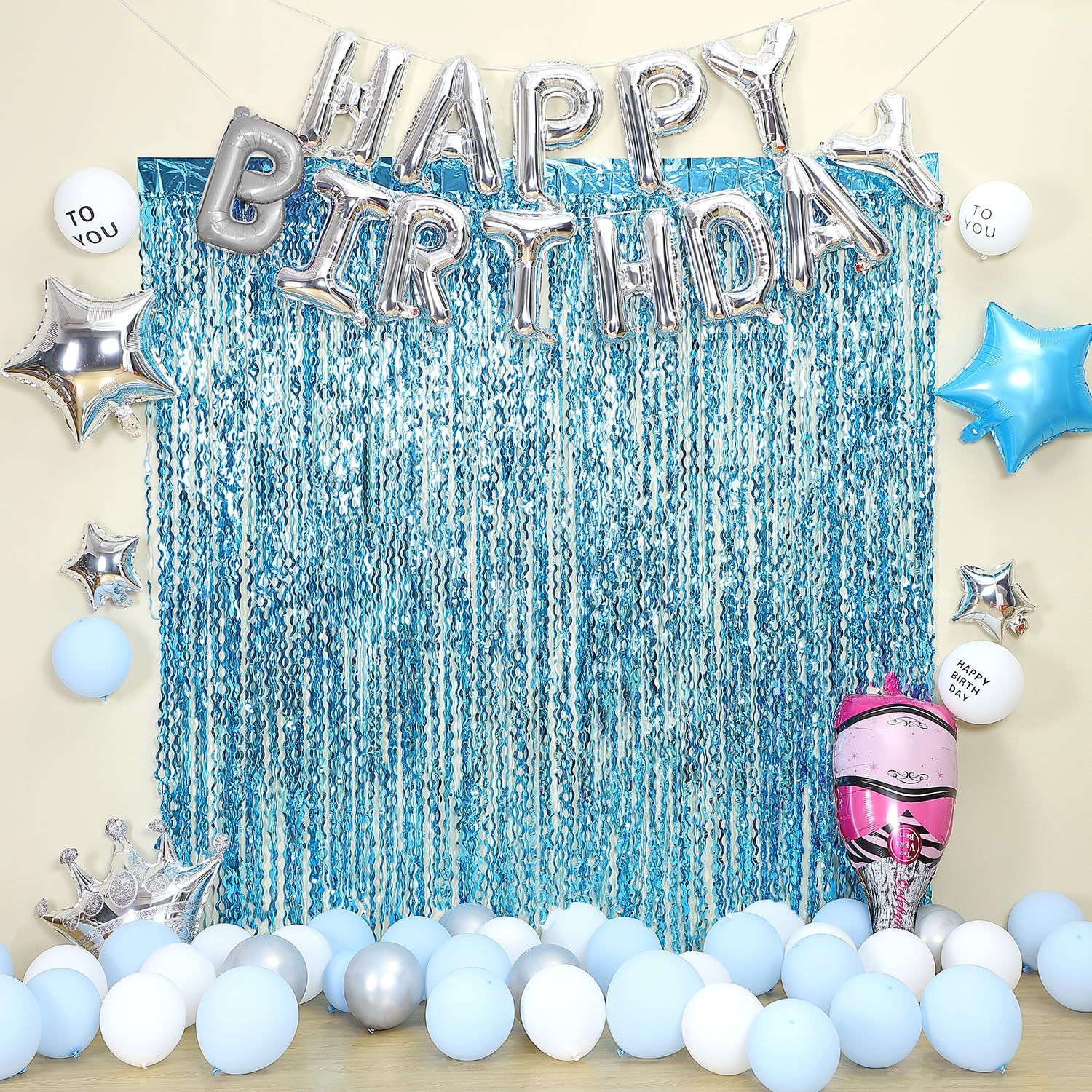 - Wavy Shape: Blue tinsel curtain party backdrop have special wavy shape and shining smooth metallic surface, which offer you a full texture that is appealing to the eye, can help you enhance your party atmosphere, adding color and spicing up your party events