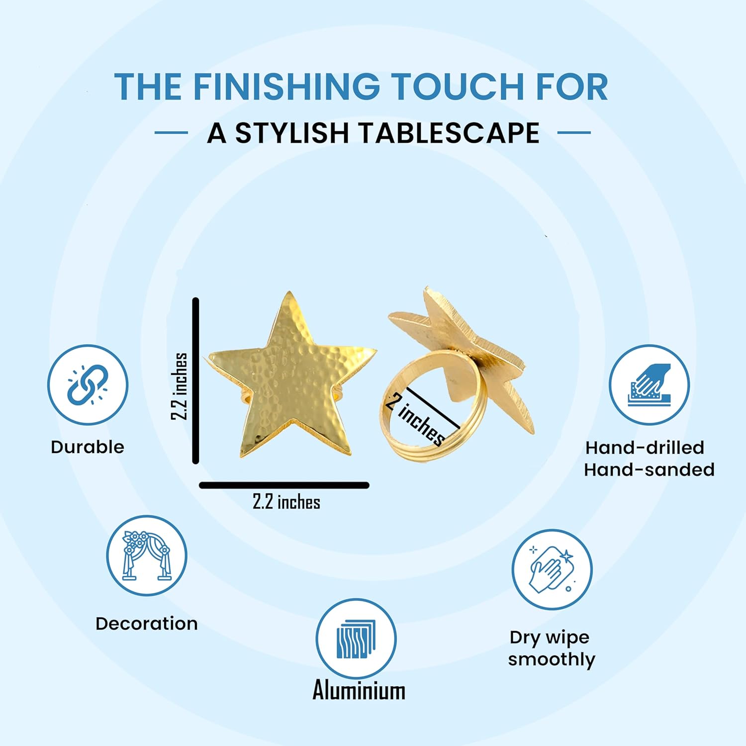 - ✅ Perfect Dimensions & Pack: Each napkin ring measures 2.75 x 2.75 x 1.75 Inches, in a pack of 12, finished in elegant gold tone.
