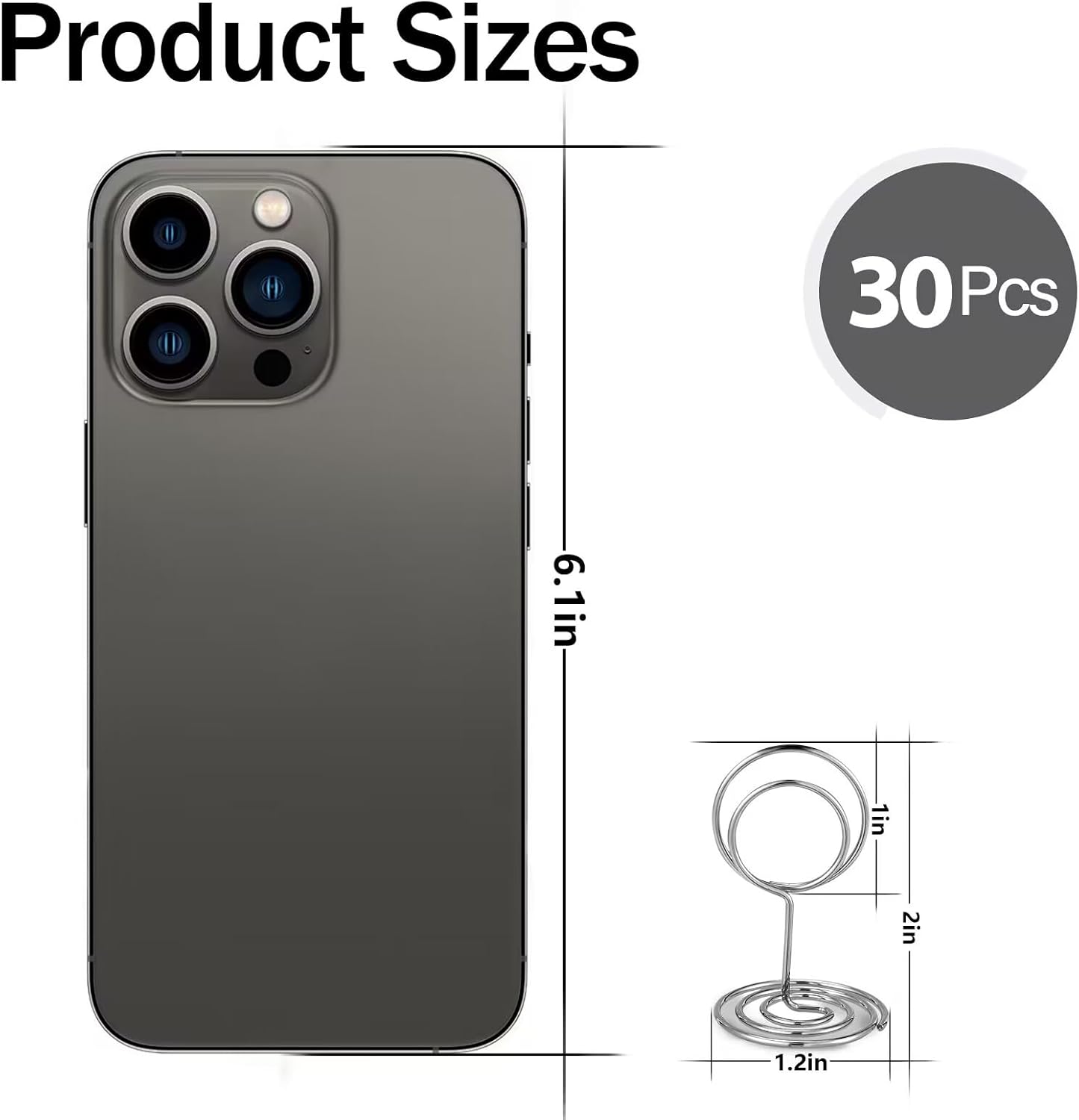 30PCS Table Number Holders Place Card Holder - Photo Holders for Tables, Cards Stand Name Menu Clips, Table Sign Holders for Wedding Anniversary Birthday Party, Silver