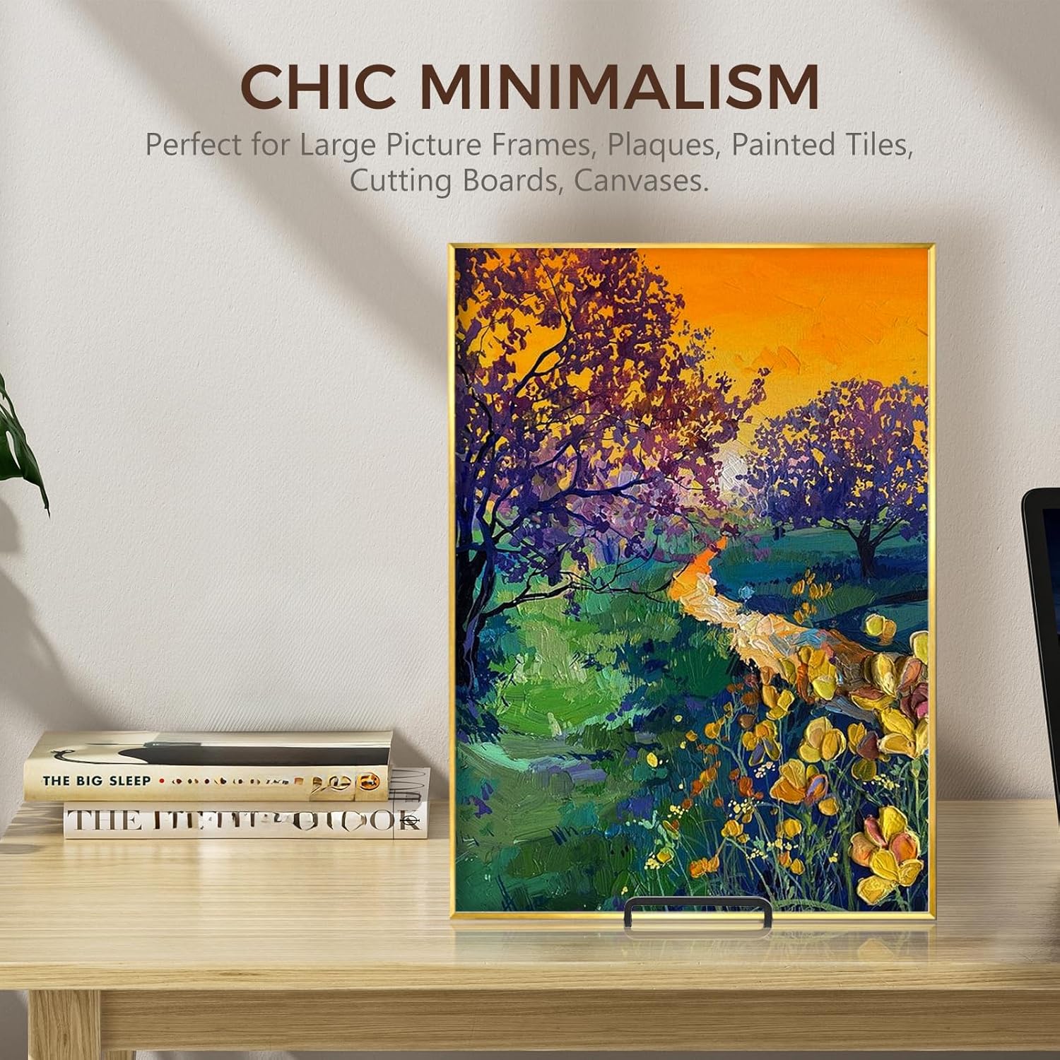 - Super High Quality - The display easel stand is made of sturdy and thick iron wire material for long-lasting use, anti-aging and not easy to deform. This table top easel stand can safely hold a variety of large items, never worry that your collectibles and artworks will fall down or bend backward.