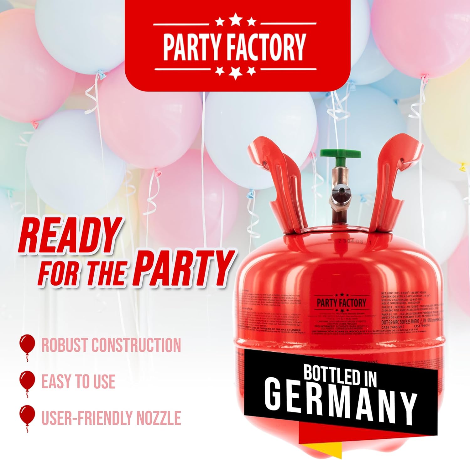 - PARTY FACTORY: Want your next party to be a guaranteed hit? Then Party Factory is the right place for you! Our store offers helium tanks for up to 50 balloons and balloons in many unique shapes and sizes.