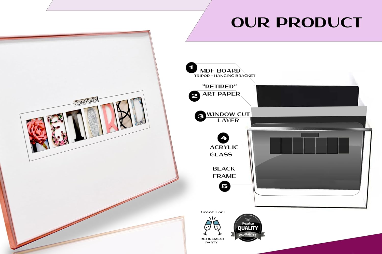 - Perfect for Any Room: The framed rose gold retirement card can be displayed in any room of the retiree's home or office as cherished reminders of their hard work and accomplishments.