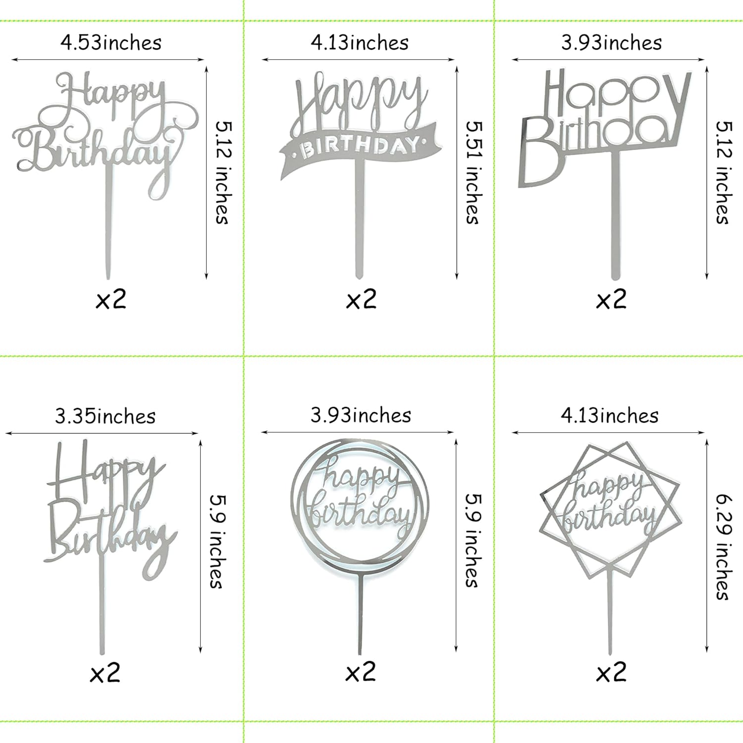 - Size: The Happy birthday cake toppersβ height is approx.5.1 - 6.3 inches, the width is approx. 3.4 - 4.5 inches. Ideal for 6-10β cakes.