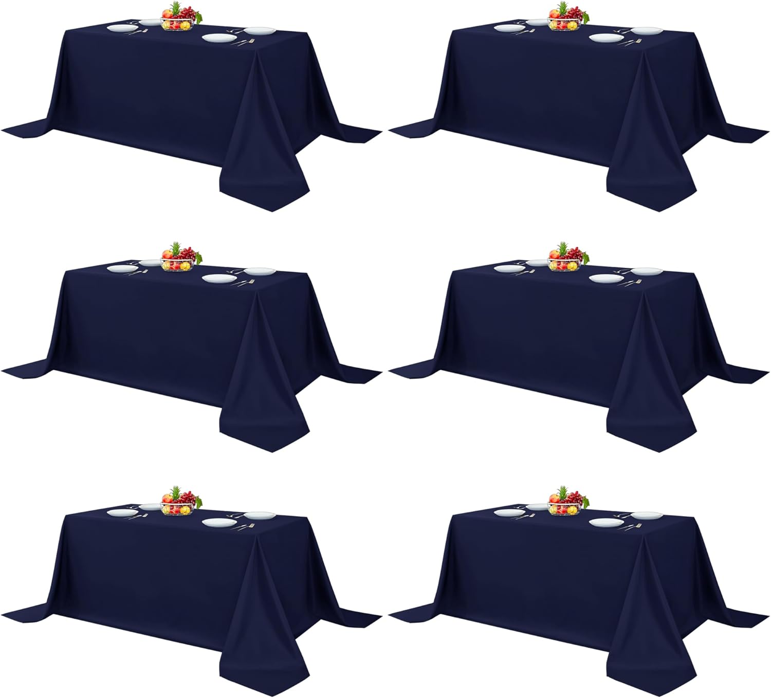 Fitable Elegant Rectangle Table Clothes, 6 Pack - 90 x 132 Inch, Navy - Reusable and Washable Tablecloths, Polyester Fabric Table Covers for Wedding, Party, Banquet, Formal Events