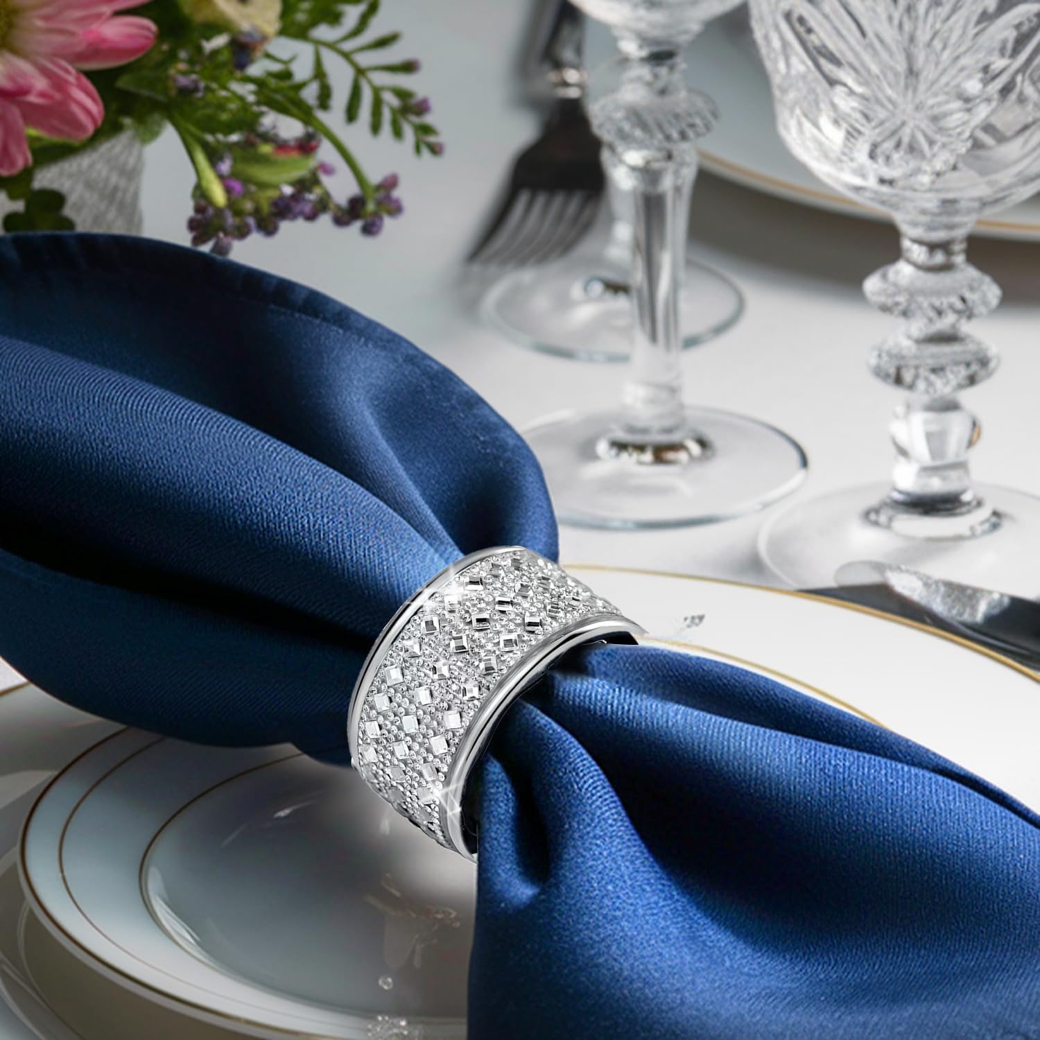 - 【Material & Quality】Napkin rings are made of stunning and mysterious silver crystal with high quality glass and silver metallic steel. Premium silver plating adds gloss. Thickened design makes the napkin rings durable and durable, longer life than ordinary napkin rings.