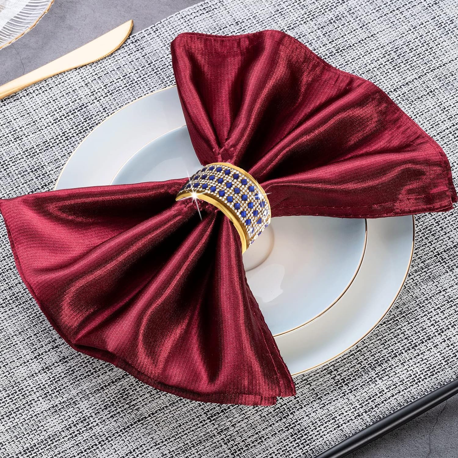 - 💎【Material & Quality】Napkin rings are made of stunning and mysterious blue crystal with high quality glass and gold metallic steel. Premium gold plating adds gloss. Thickened design makes the napkin rings durable and durable, longer life than ordinary napkin rings.