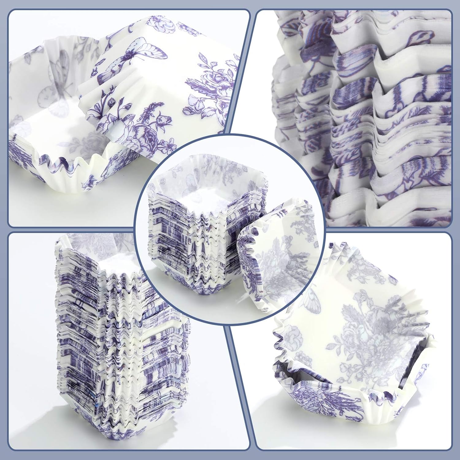 - Enough to Use: you will receive a total of 350 pieces of square cupcake liners in blue and white color and printed with flower and butterfly, offering sufficient quantity to satisfy your baking use and replacement demands, you can also share with others to make their cupcakes more eye catching
