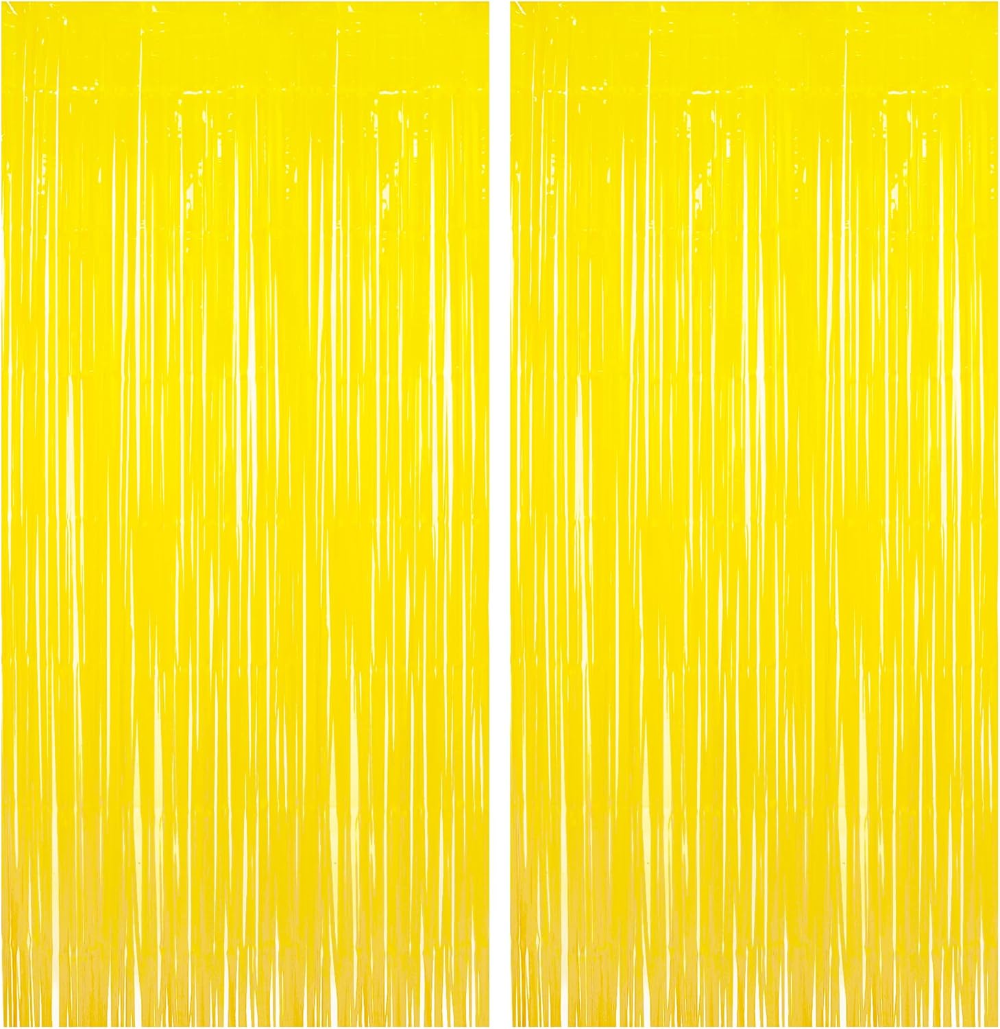 BRAVESHINE Foil Fringe Curtain Backdrop - 2 Pack Yellow Tinsel Photo Booth Backdrop Party Streamers for Easter, Birthdays, Christmas, Lemon, Pineapples, Kids' Party Decorations