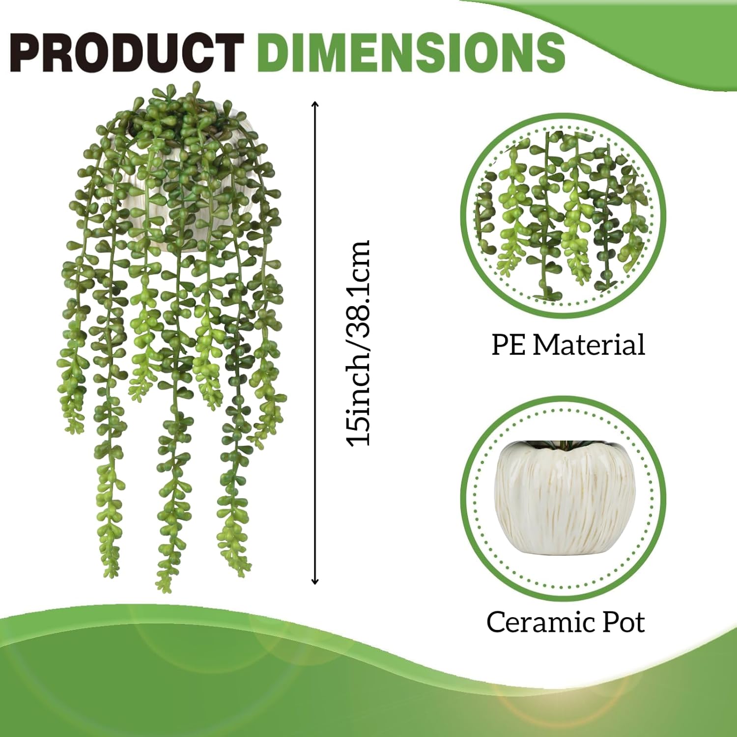 - Portable Size: Measuring at 4.33×3.74×15 inch, our faux string of pearls plant is lightweight and easy to move around, perfect for decorating any space.