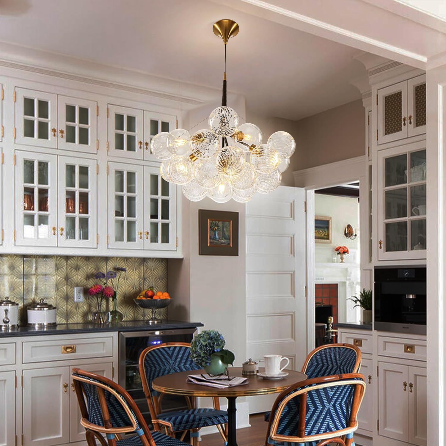 - This black and gold bubble ball chandelier is crafted by skilled masters. made of murano hand blown swirled glass and metal frame used gild brass process, exquisite, solid, light resplendent, a unique piece of art for you a visual comfort.