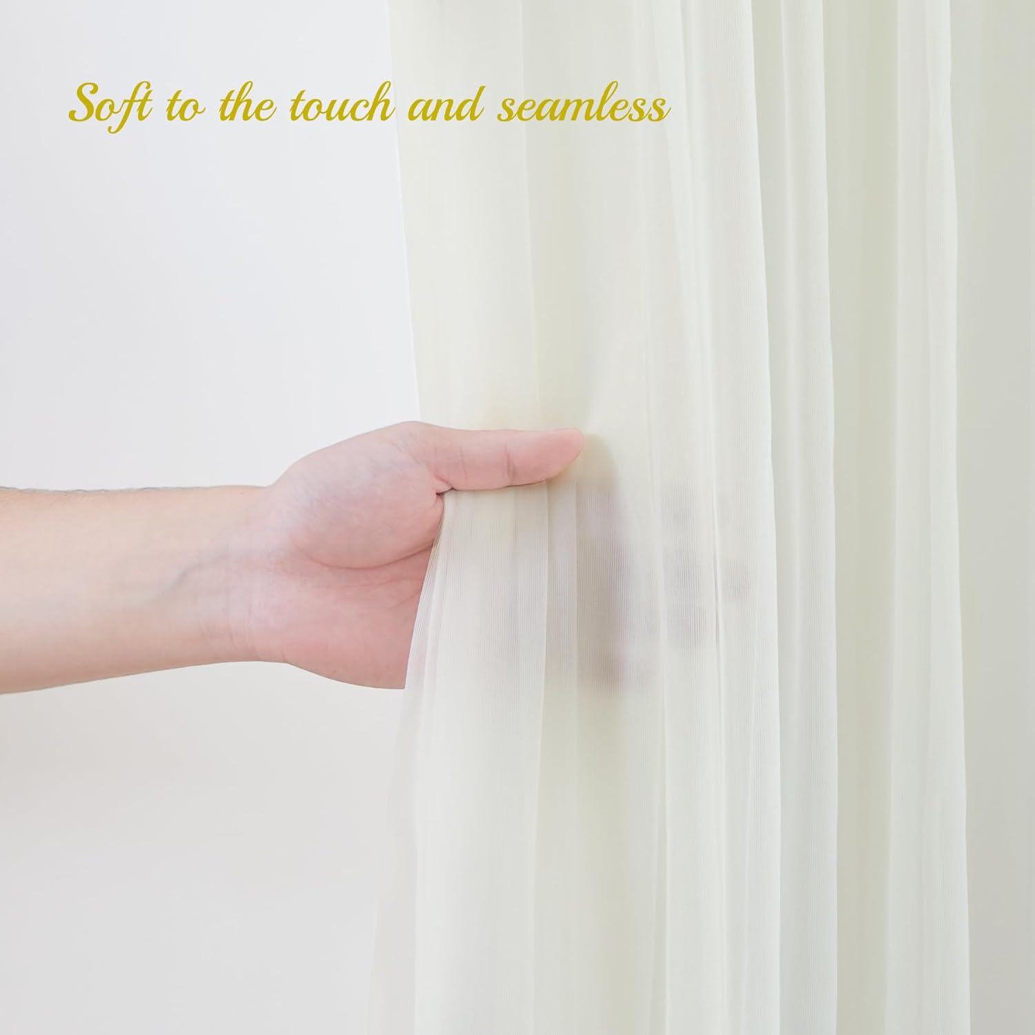 - 【Elegant Sheer Draping Fabric】Our ivory backdrop curtain are crafted from high-quality delicate soft and smooth tulle.The fabric is so dreamy. It's like a semi sheer dress that flows in the wind, so romantic. And it's also lightweight to wear, the wind was able to blow it for a dramatic effect.