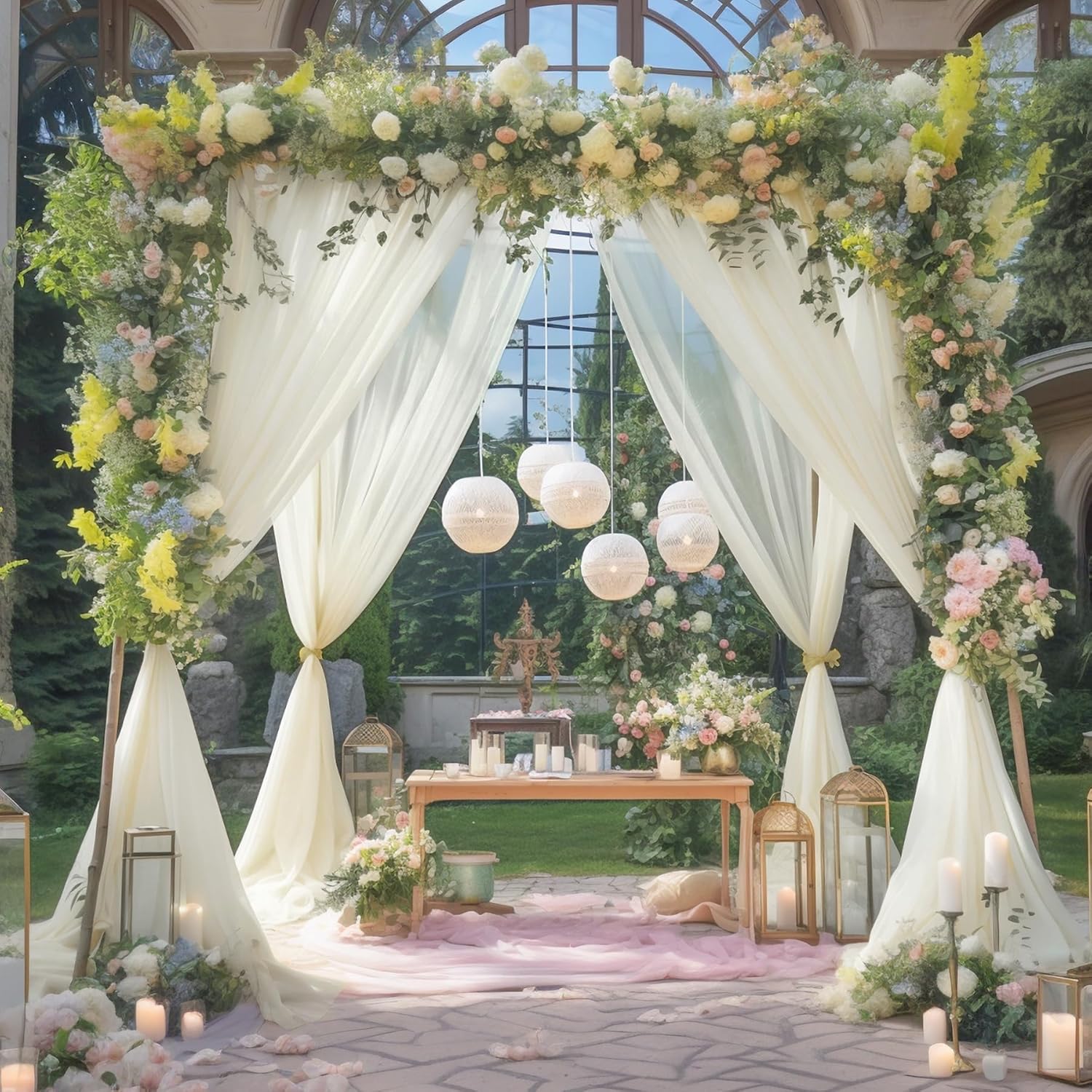 - 【Multiple Use Light Curtain Backdrop】These ivory sheer backdrop curtains are applicable for any indoor and outdoor occasions. Perfect for weddings arch, receptions, parties, bridal and baby showers, birthdays, candy buffets, dessert tables background, trade shows, wedding stages photography, photo booths, ceremony and more.