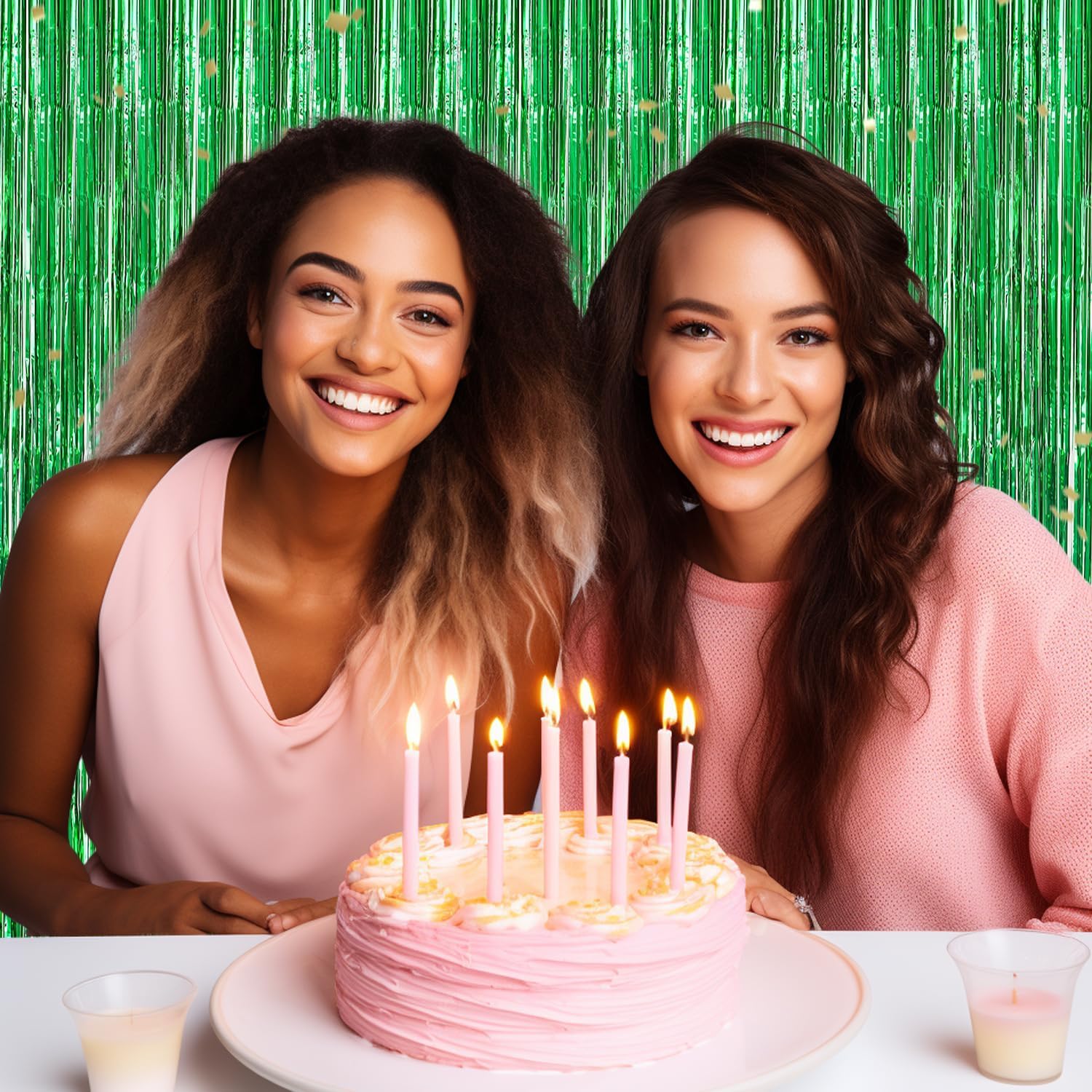 3 Pack Foil Fringe Backdrop - Green Shiny Tinsel Curtains for Party Decoration/Photo Booth Props - 3.3x8.2 FT Metallic Foil Backdrop for Birthday, Wedding, Graduation, Christmas.
