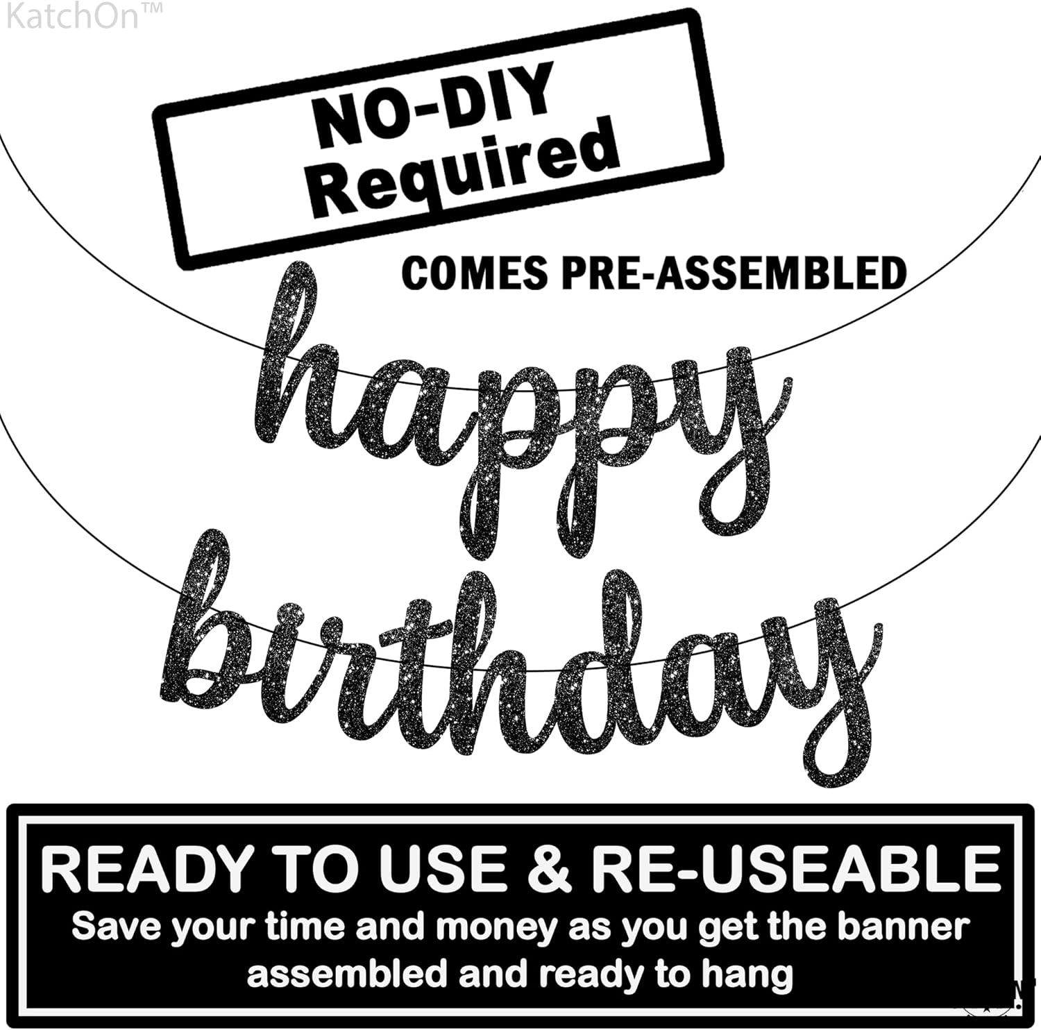KatchOn, Glitter Cursive Black Happy Birthday Banner - Pre-Strung, 10 Feet | Happy Birthday Sign | Birthday Decorations for Women, Men, Boys and Girls | Halloween Birthday Party Decorations