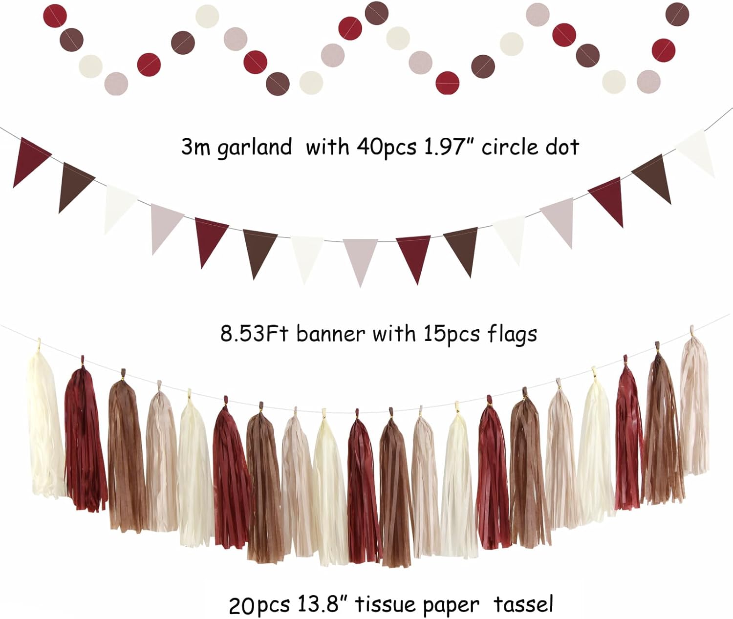 - Suitable Occasion:They are perfect for birthday,rustic weddings,engagement,boho baby shower decorations,bridal shower decor,bachelorette,burgundy party decorations,fall autumn decorations,Thanksgiving,boho party decorations,mothers day,valentines day,Christmas decorations,brown party decorations.