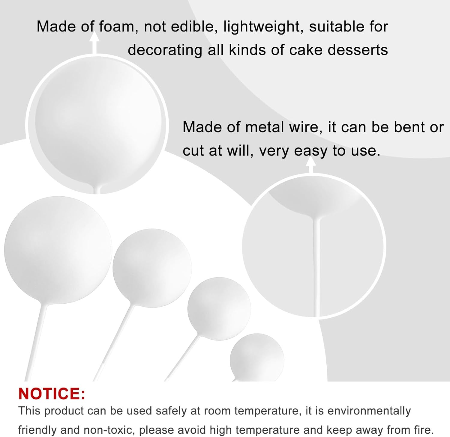 ASTARON 20 Pcs Ball Cake Topper Decorations Mini Balloons Cake Topper Sticks White Balls Cake Picks Cake Topper Balls Cake Decorations for Wedding Birthday Cake Decorations
