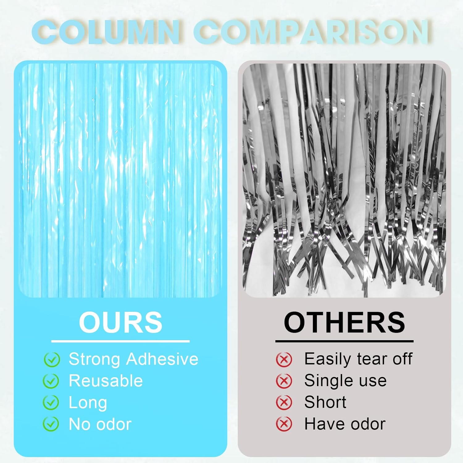 - Premium Material: This Pastel Blue foil curtain backdrop is made of stable tinsel, non-fading, stay shiny and reusable. Unfold it and then enjoy your glittering party