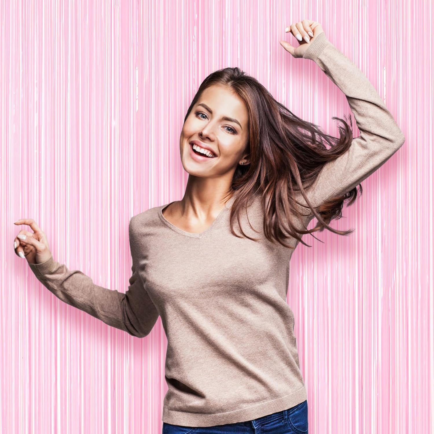 - Premium Material: This Pasel Pink foil curtain backdrop is made of stable tinsel, non-fading, stay shiny and reusable. Unfold it and then enjoy your glittering party
