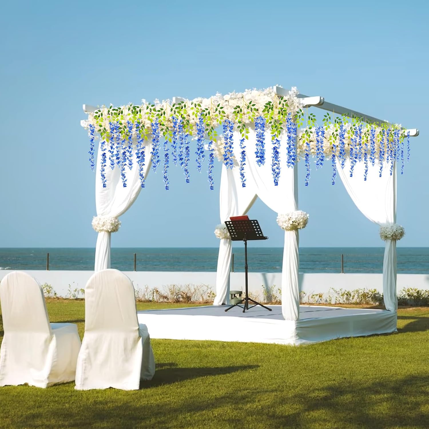 - 【Easy to Install】The royal blue hanging garland flowers stem are made of durable metal wire and covered with plastic. You can bend the wisteria flower in any shape to satisfy your decoration imagination without damaging it. And the wisteria flower is very easy to install and remove, you can reduce a lot of troubles on installation.
