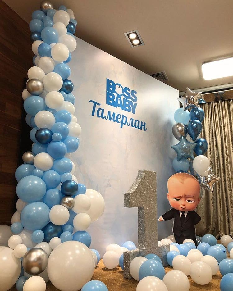 Blue Silver White Confetti Balloons Kit, Light Blues Metallic Blue Pastel Blue and Pearl Silver Birthday Balloon, for Boy Birthday Baby Shower Wedding Party Decor