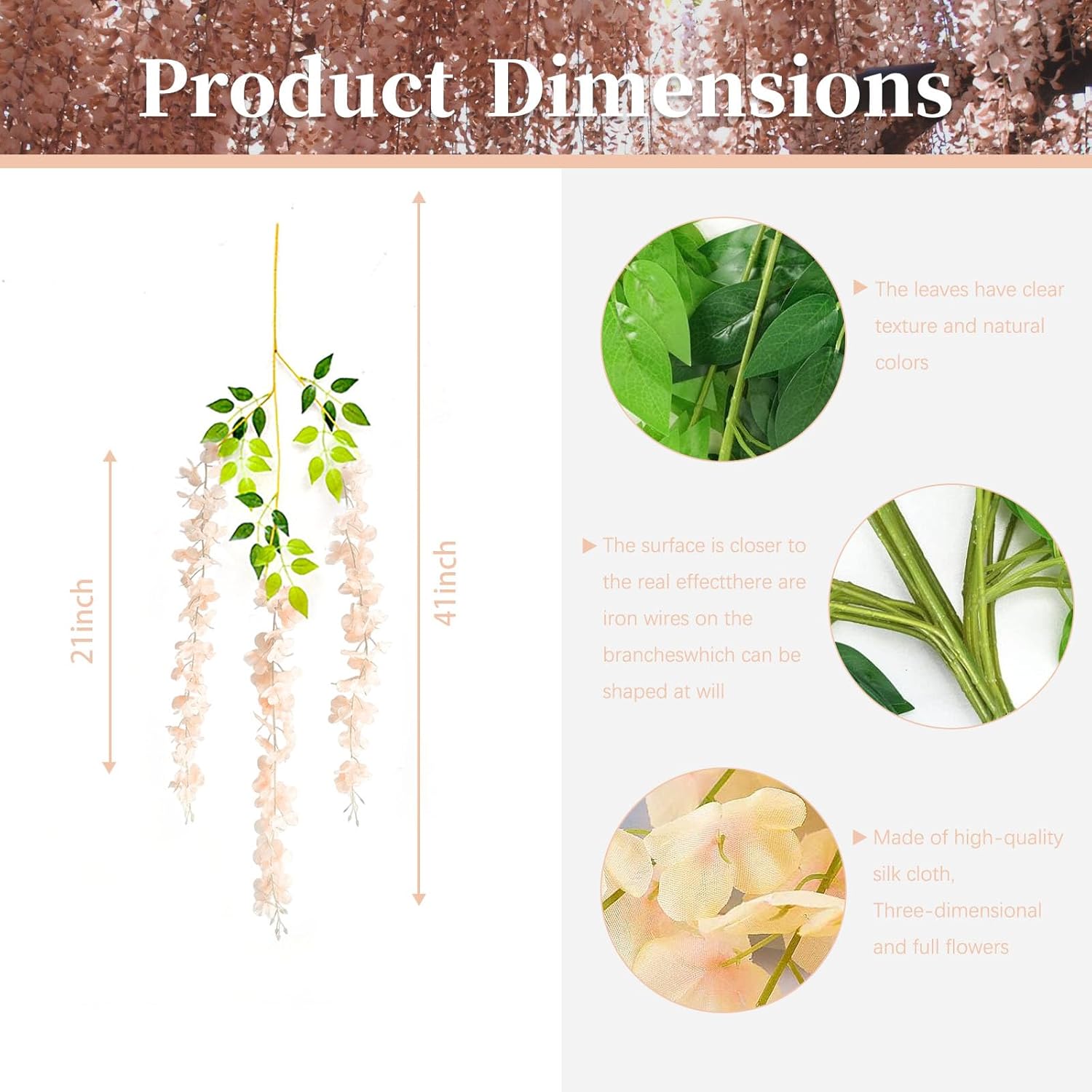 - 【Cycle Used】The champagne artificial wisteria garland is made of silk, the stem is made of metal wire and plastic, and it can be easily bent and recovered, so you can use it many times, very environmentally and cost-effective.