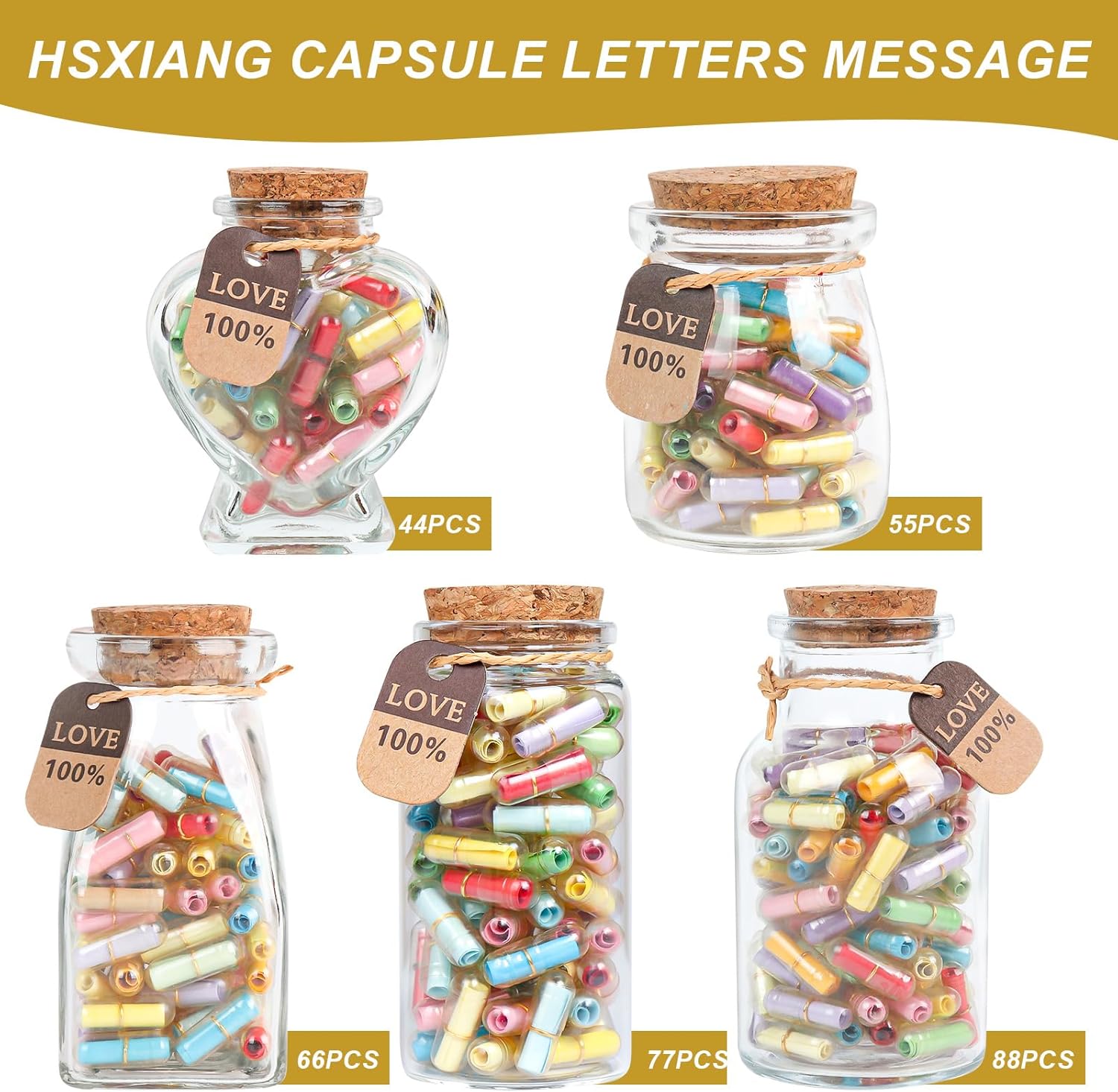 - Capsule Message in a Glass Bottle: Cute thing capsule design;Each glass bottle has 55pcs letter paper transparent,write down what you want to say and express.