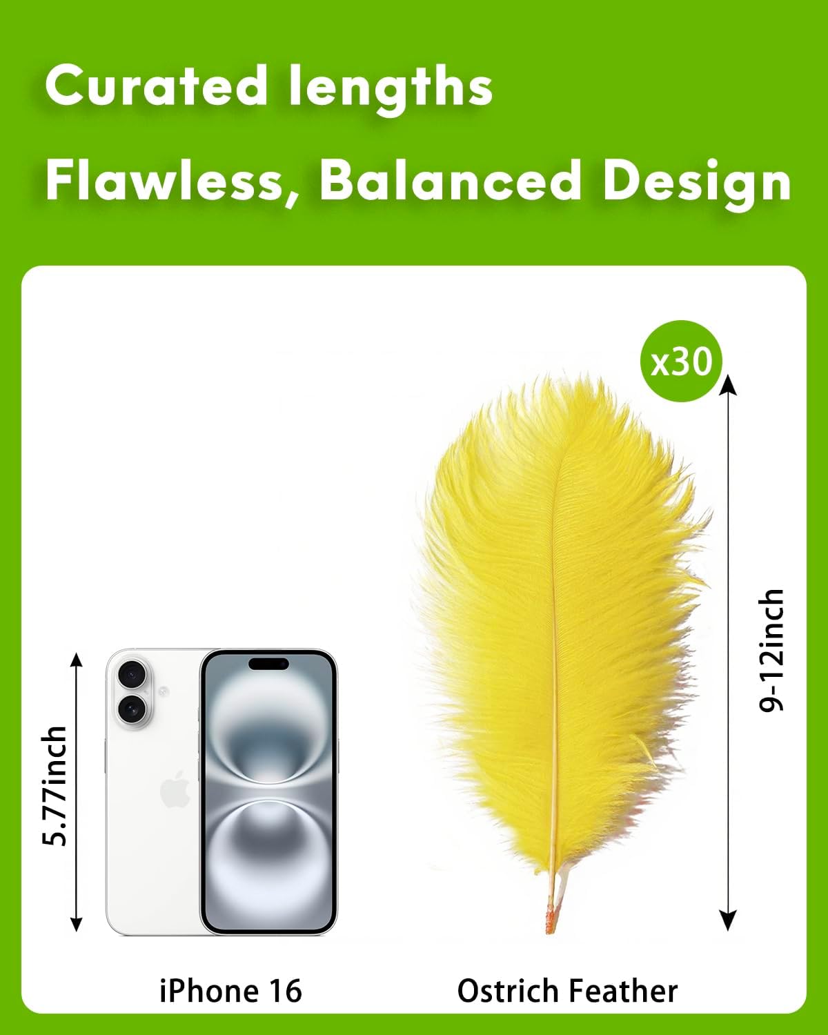 NEWONG 30pcs Yellow Ostrich Feathers Natural Bulk 9-12in(23-30cm) Vase Craft Wedding Home Party Centerpieces Christmas Day Decoration