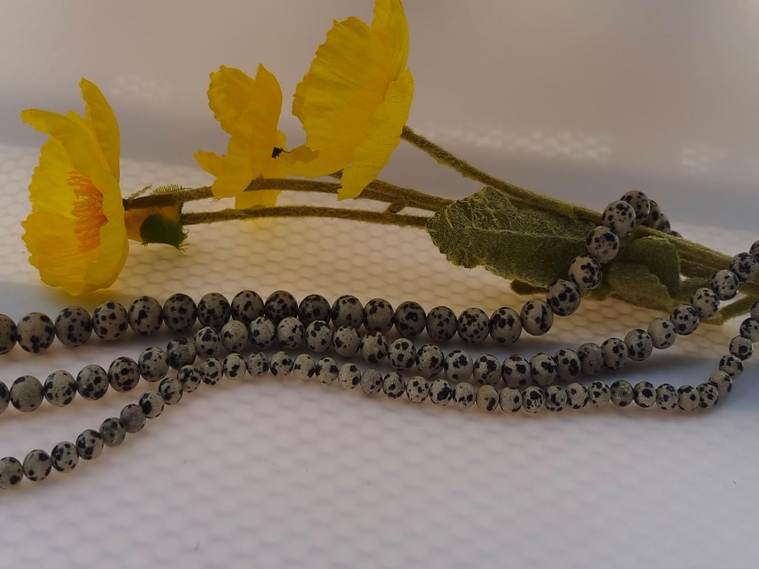 Stone Beads 6mm 140pcs Dalmation Spot Jasper Beads Round Loose Gemstones Beads for Bracelet Necklace Jewelry Making (6mm, 60609 Dalmation Spot Jasper)