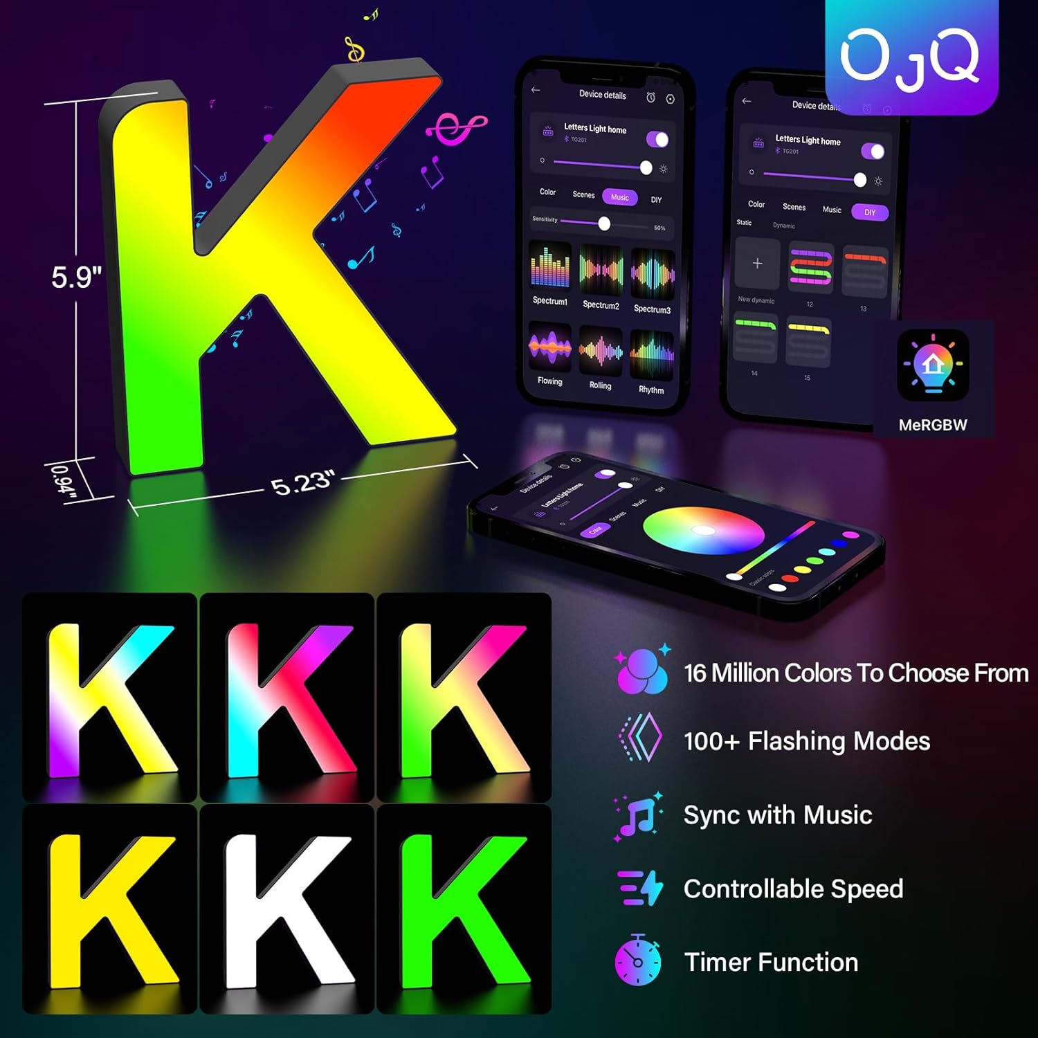 OJQ Light Up Letters LED Letter - Marquee Letters Room Decor Alphabet Letter Music Sync Color Change Colorful - Christmas Birthday Gifts for Girl - Teen Girls Gifts Party Home Wall Decor