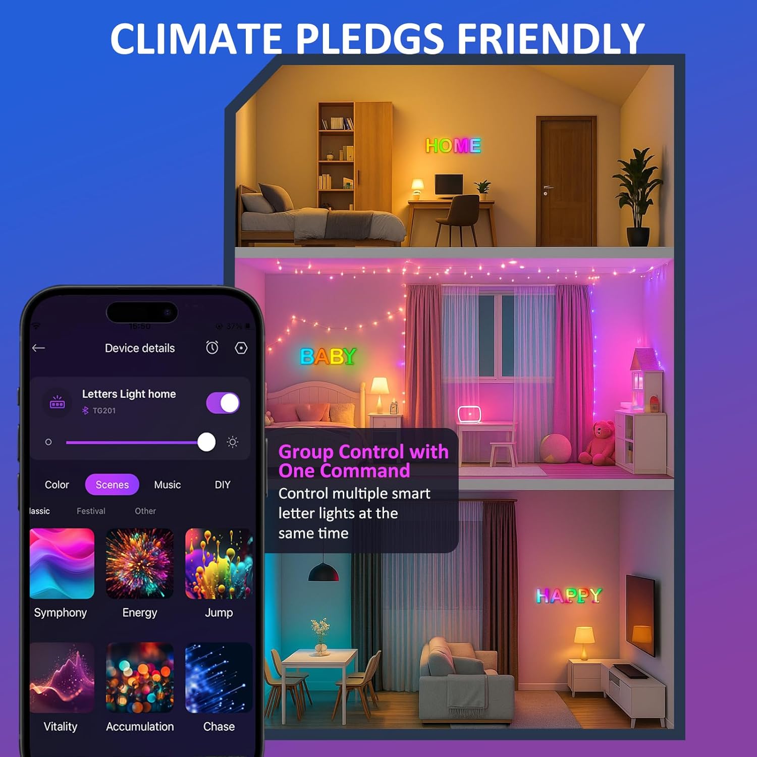 - Smart APP and DIY: LED letter lights can be freely controlled by smart APP, with hundreds of different colors and rhythm light effects. The LED lights are colorful, durable and adjustable in brightness, you can also DIY your own unique colors and combinations to suit the ambience of the room